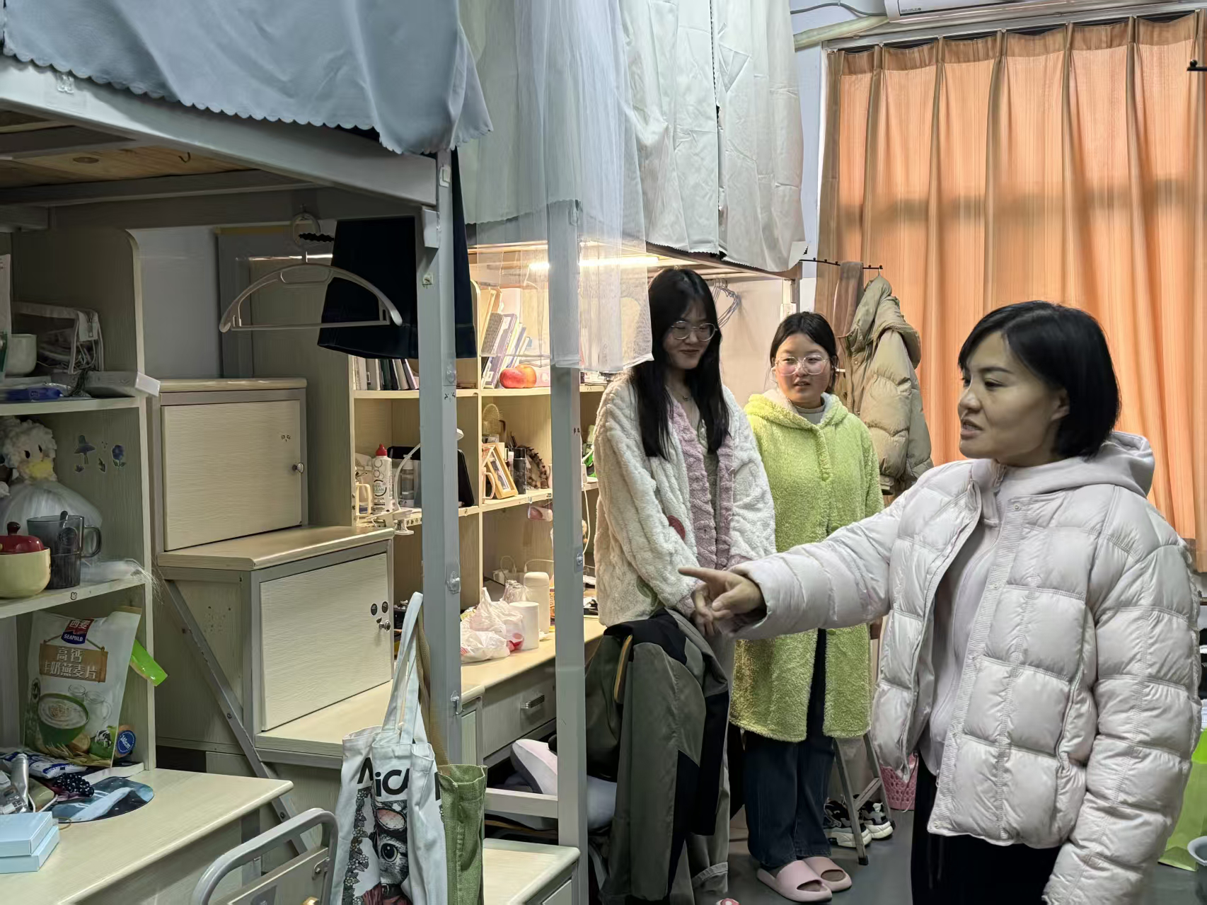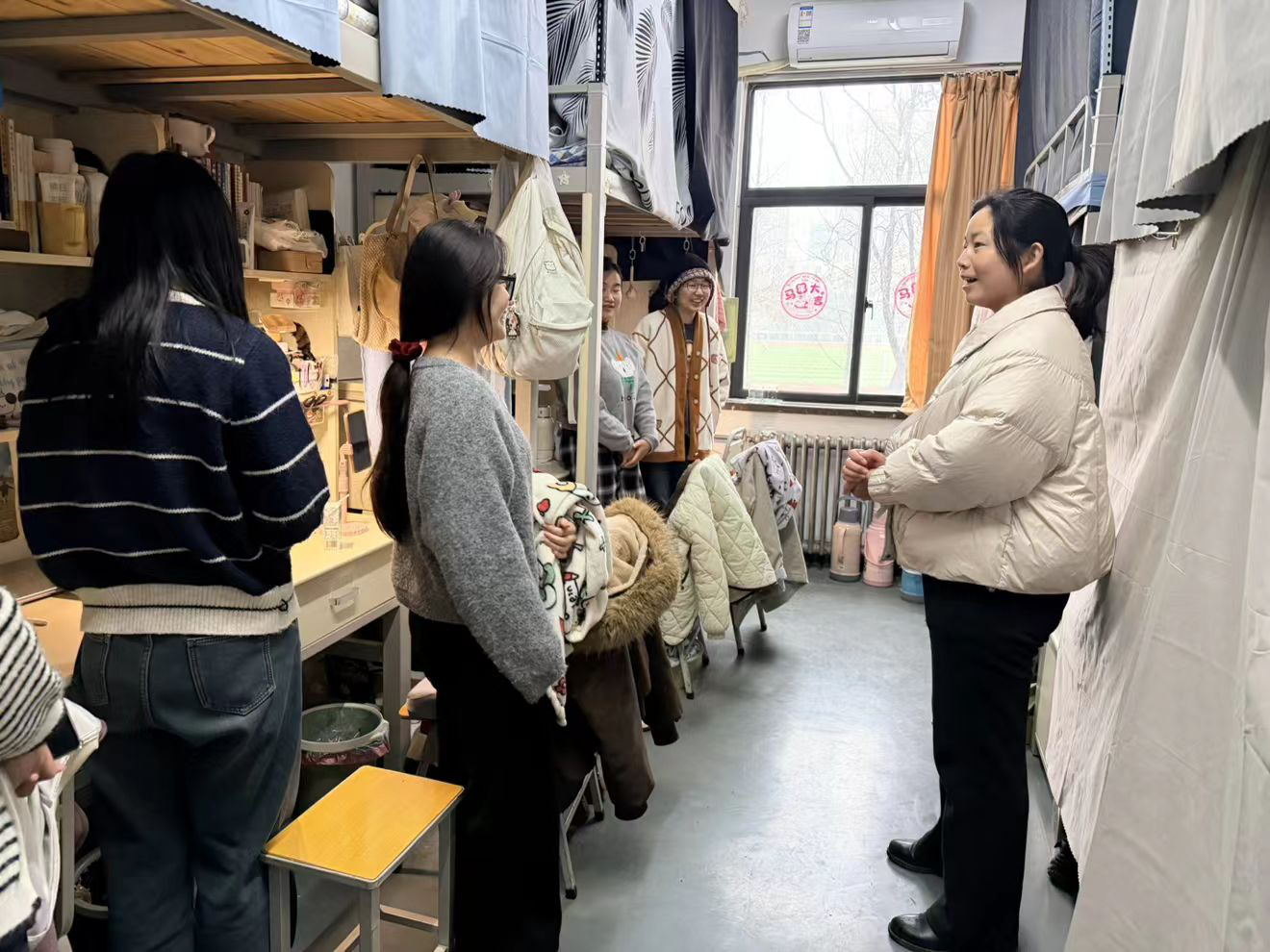 在学生宿舍,院领导与同学们亲切交谈,详细了解大家的假期生活、返校情况及新学期规划,叮嘱同学们注意用电安全、保持良好卫生习惯,提醒大家提高安全防范意识,谨防各类校园诈骗,切实保护人身财产安全。各年级班主任也纷纷走进所带班级宿舍,与学生深入交流,关心思想动态和实际困难,并结合学生关切,就新学期学业规划给予针对性指导。