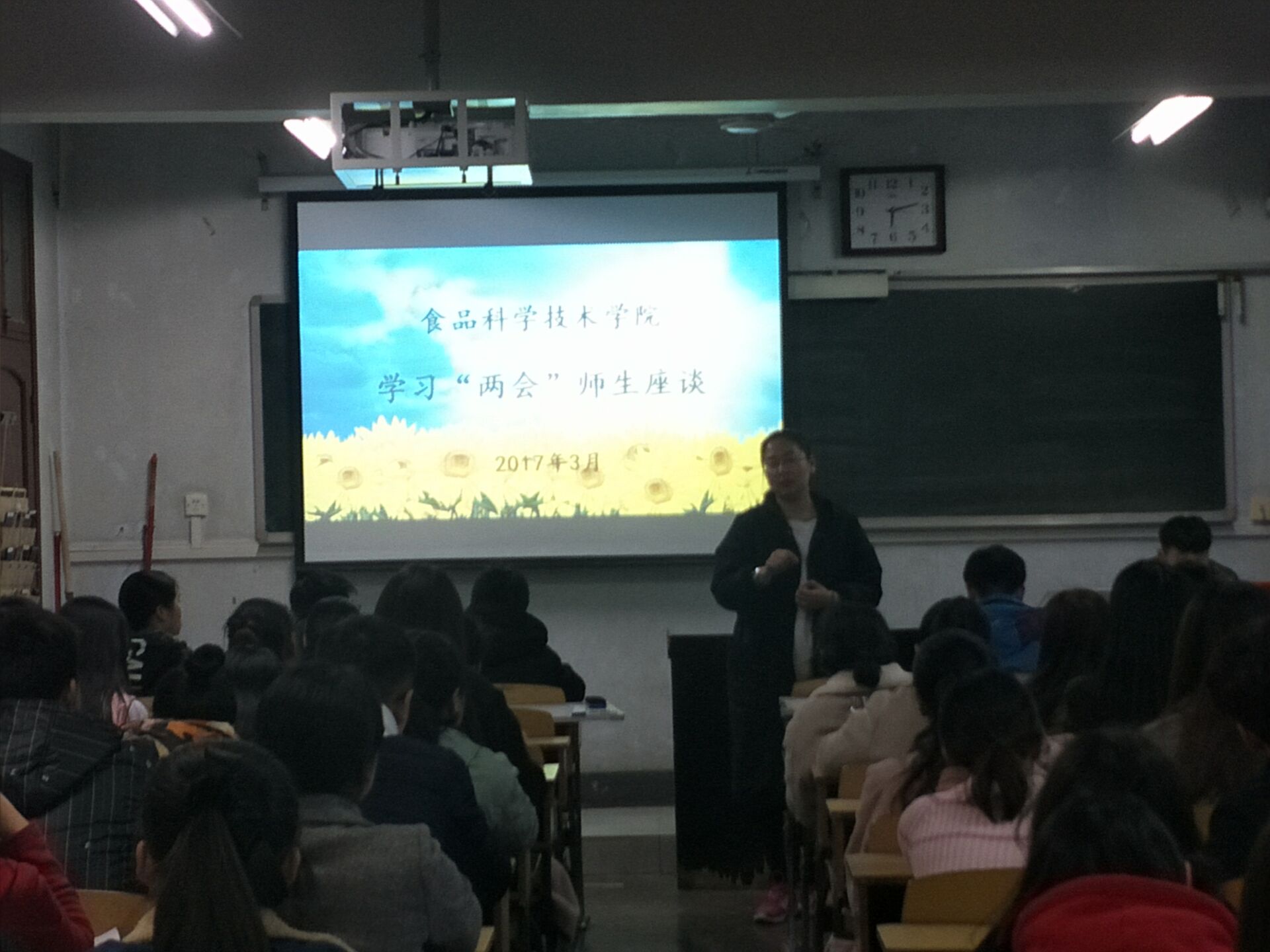 会上,李蓓蓓首先带领大家学习了政府工作报告中的重点内容,并就报告中涉及的改革、发展、民生等问题谈了自己的看法。随后,在座师生结合自己的认识,发表对“两会”的热点话题的见解,其中涉及生态环境、食品安全、扶贫政策、就业创业等问题,经过一番热烈的商讨,大家又进一步丰富和深化了自己对“两会”的认识。最后,李蓓蓓要求大家多关注“两会”中与专业相关的新政策新规定,寻找与自己专业的契合点,以获得更长远的发展,并希望大家能够带动身边的人共同提升政治素养,完善自身修养。