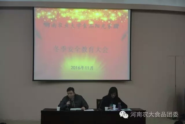 在文化路校区三百人报告厅召开冬季学生安全教育工作会议,院团委副书记杨光,院辅导员孟子晴出席会议,全院各班班委参加会议。