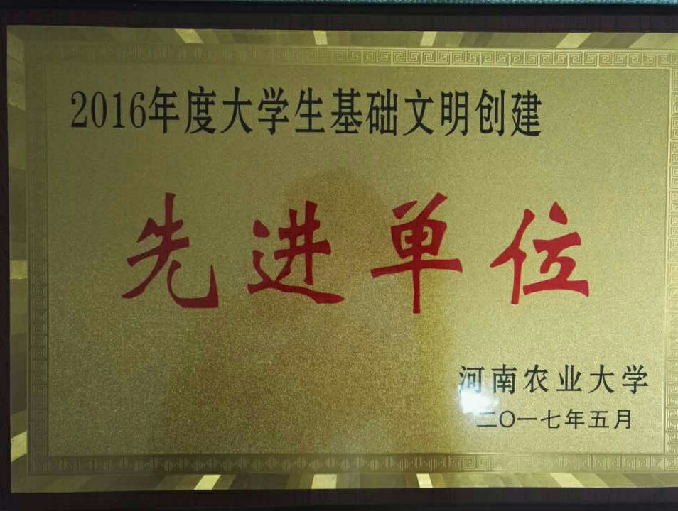 “博雅修身,厚德端行”大学生基础文明创建活动中荣获2016年度大学生基础文明创建先进单位,可喜可贺!