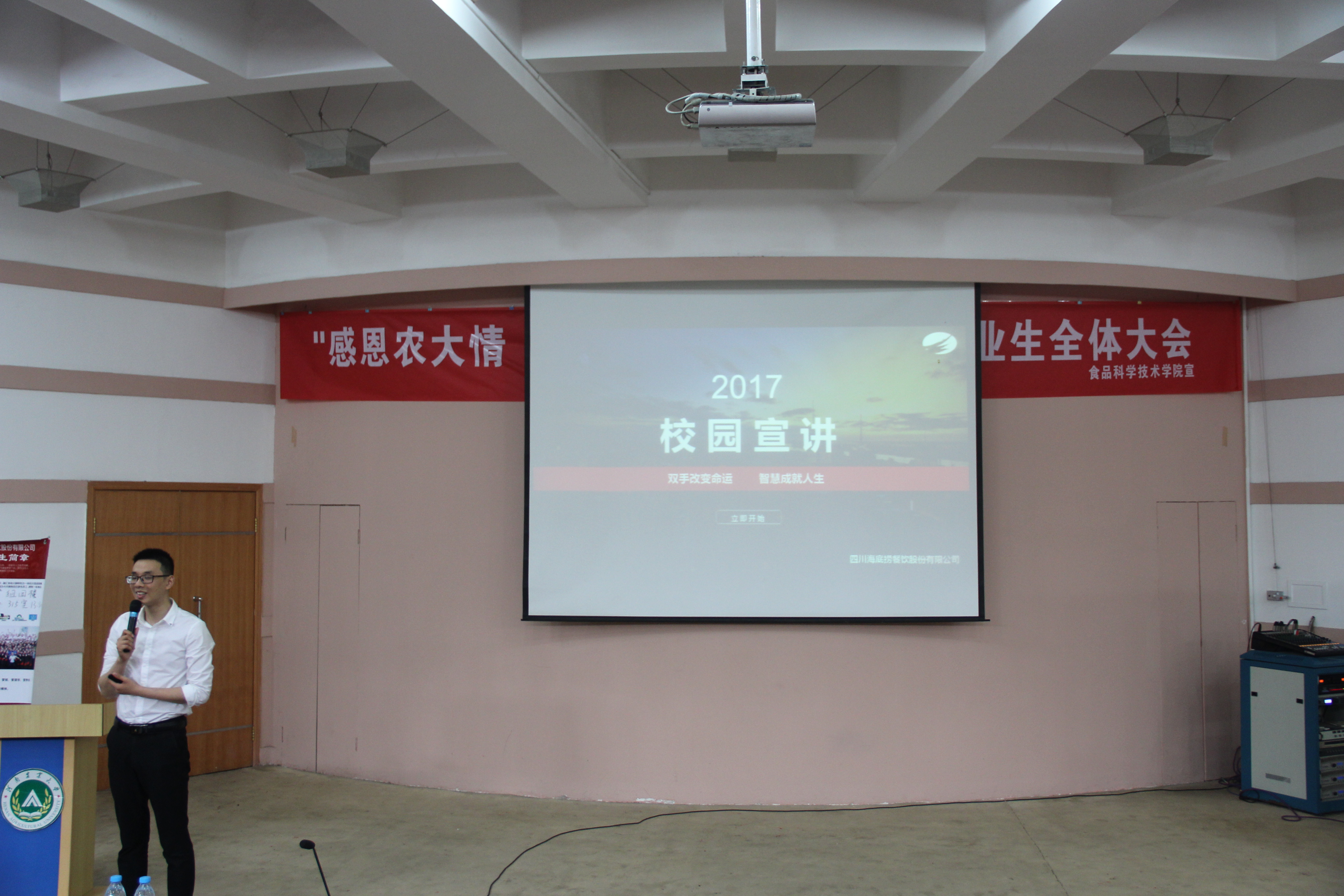 会上,杨孟杰从海底捞简介、员工福利待遇、未来发展方向以及大学生在其公司的晋升与发展四个方面向大家进行详细的介绍。并指出,海底捞将会努力拓展海外市场,走向全世界。现场互动问答环节中,杨孟杰从假期安排、食宿条件、工龄贡献奖励以及政策补贴等方面一一列举出应届毕业生选择加入海底捞的诸多好处,并提及到公司的部分旗下品牌,社会责任和市场口碑。此外,还就同学们关心的专业发展方向、未来职业规划等问题给出了详细的解答,并鼓励食品毕业生加入海底捞团队,共同打造美好未来。