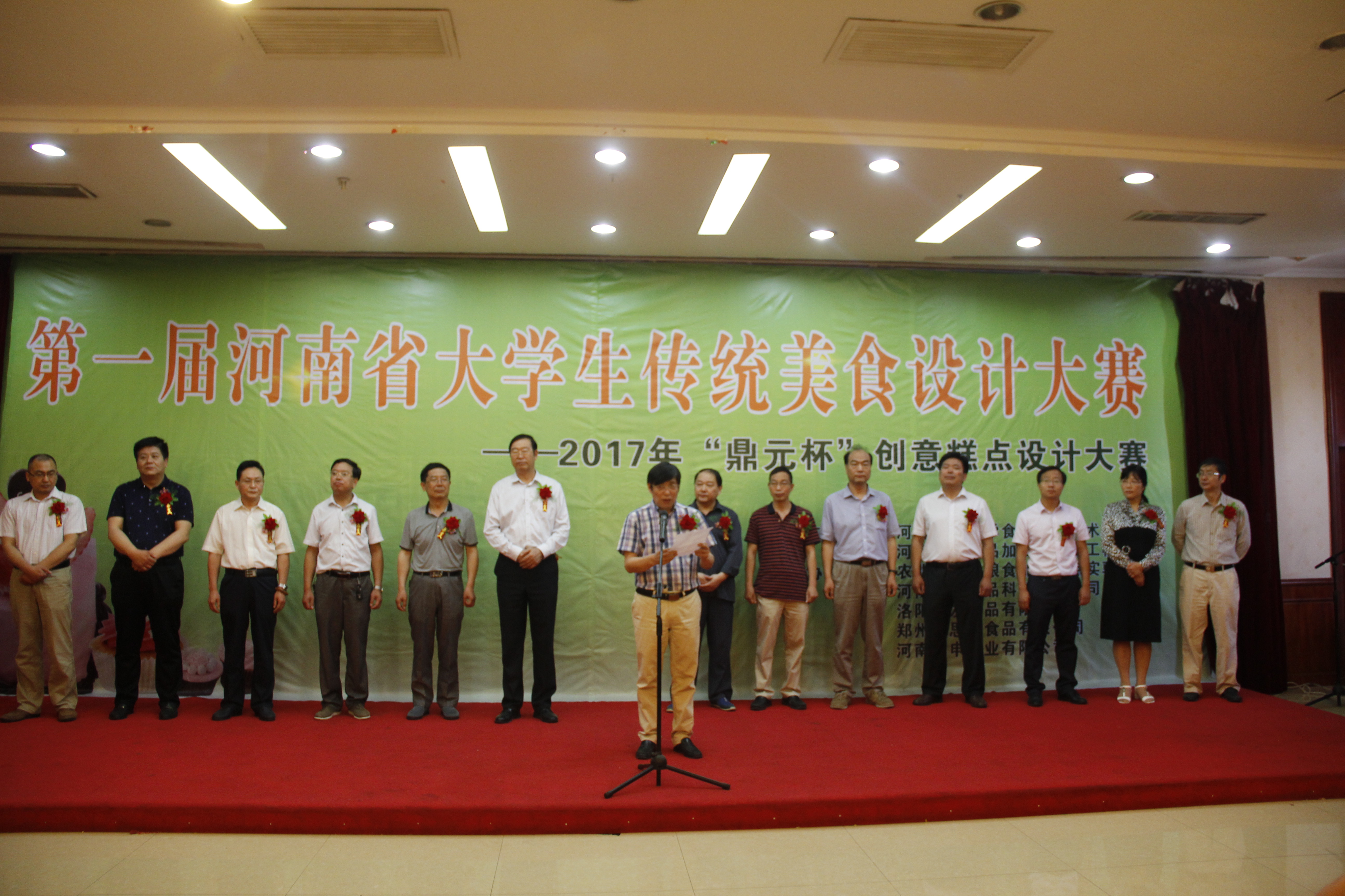 河南省农产品加工与贮藏工程学会理事长吴坤在开幕式上致辞。他代表大赛主办方向全省各高校参赛师生的到来表示热烈欢迎,并向大赛的组织者和工作人员付出的辛勤劳动表示感谢。他指出,本次大赛参赛作品色香味俱全、工艺精巧、各具特色,希望各位选手能够在此次大赛中赛出风格、赛出友谊、赛出水平,也希望大众评委和专家评委公正地把选票投给最好的作品。相信通过此次比赛,将对继承和弘扬中国传统美食文化起到积极的推动作用。最后,他预祝参赛选手取得优异成绩,大赛圆满成功。