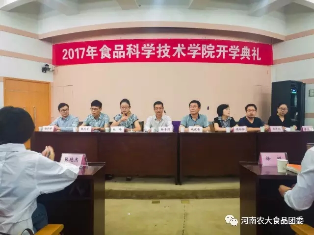 在文化路校区三百人报告厅举行2017级新生开学典礼暨军训动员大会。院党委书记杨喜洲、院长赵改名、院党委副书记魏玮、副院长蒋玲玲、副院长黄现青、院办公室主任谢新华、实验室中心主任张建威、院团委书记李蓓蓓、院团委副书记杨光以及2017级新生班主任出席大会,2017级全体同学参加大会。会议由院党委副书记魏玮主持。