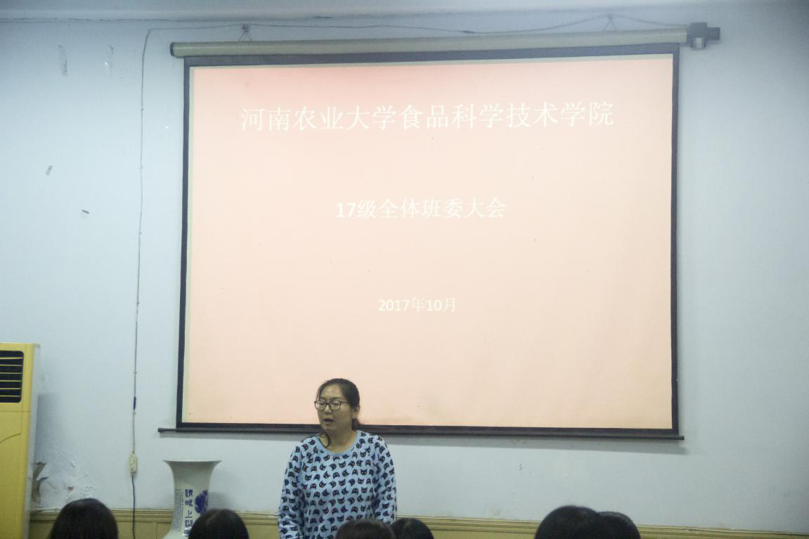 在文化路校区一号楼报告厅召开2017级全体班委大会,院团委书记李蓓蓓出席大会,澳门银河App
