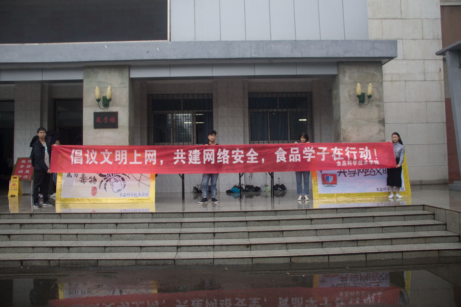 在3号楼开展以“倡议文明上网,共建网络安全,食品学子在行动”为主题的宣传活动,向参与活动的师生发放网络安全宣传手册,讲解有关网络常见陷阱和相关技巧,号召师生参与“倡议文明上网,共建网络安全,食品学子在行动”条幅签字活动。