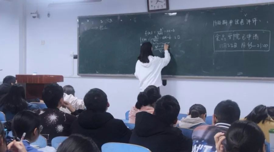 学生奋发向上,努力学习。首先,18级优秀学生讲解高数试题,内容穿插书本知识点,态度严谨,概括全面,并强调大家:高数并非只考逻辑性,同时也考察知识点的记忆。接着,19级学生代表上台讲解化学试题,分析缜密,有条不紊。最后18级学员为大家补充讲解两个科目相关的拓展知识点,使同学们对混淆之处更加清晰明了。