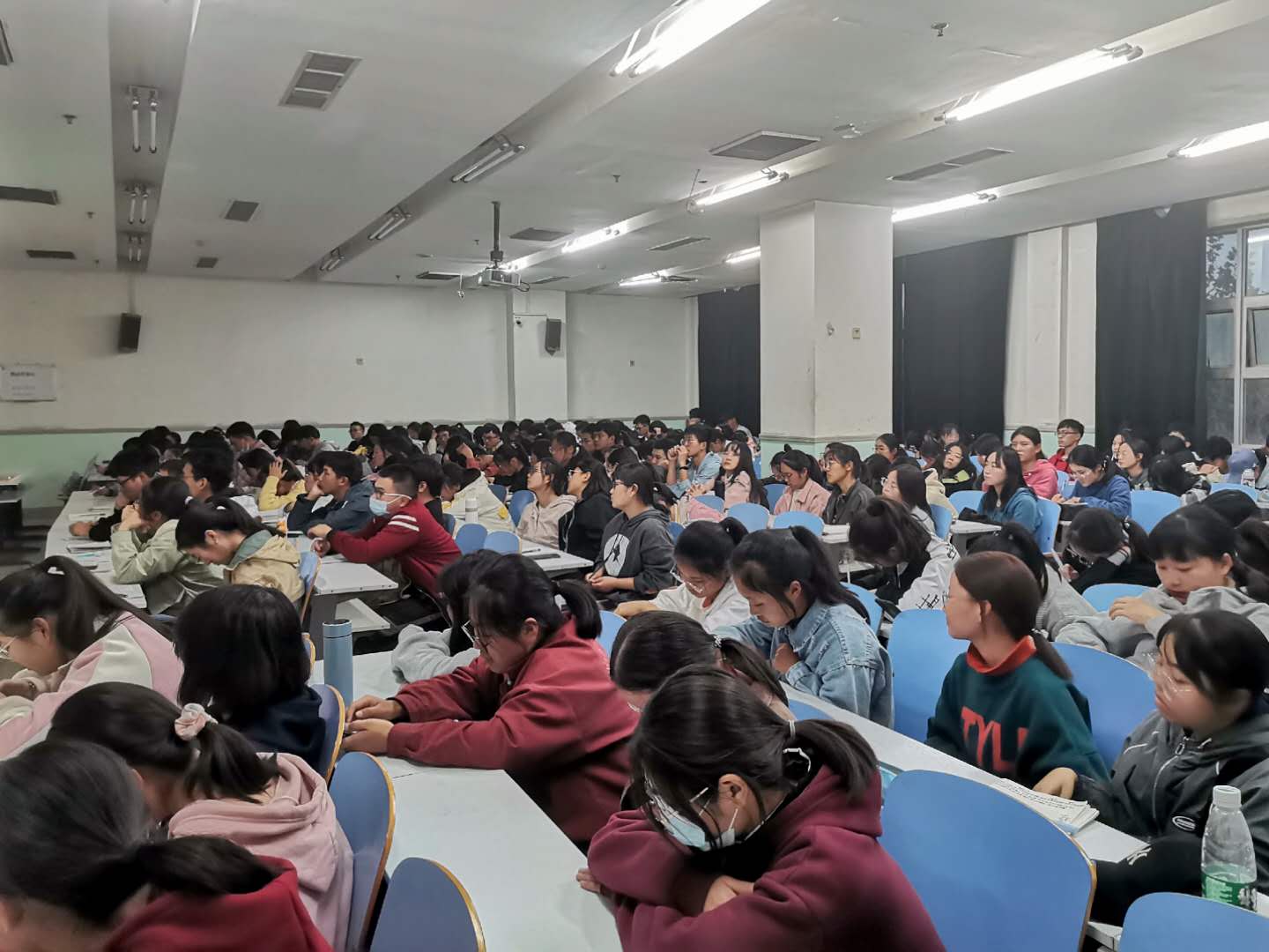 特邀校教学督导、院关工委阳光督导刘波涛教授在文化路校区工程楼302教室做大学生成才成长报告会,2020级新生参加会议。