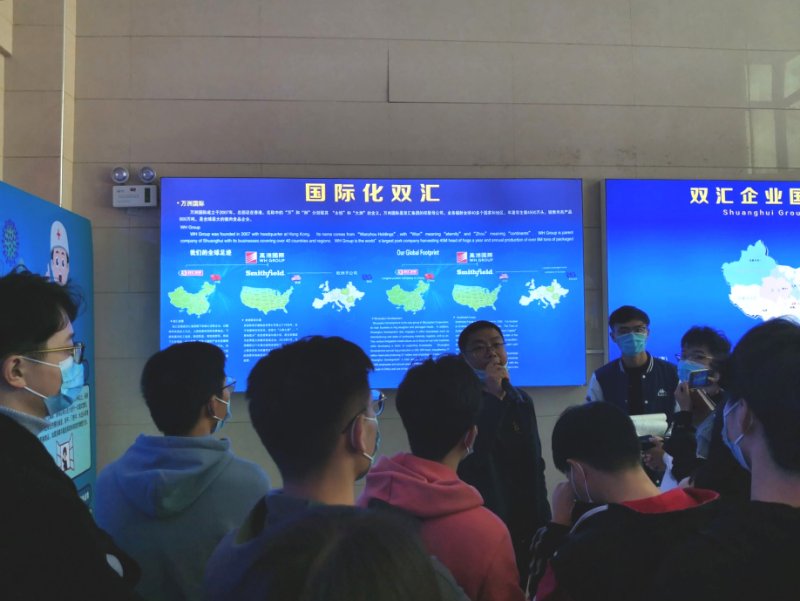 此次组织的认识实习活动表示肯定和欢迎。郑州双汇食品有限公司是专业从事肉制品处理与加工,集养殖、屠宰、加工为一体的综合性肉制食品企业。在赵亚茹的带领下,食工专业学生参观了企业的对外展厅,通过学习和介绍,同学们对双汇食品有限公司的澳门银河app、产品结构、市场格局和战略规划等方面有了深入的了解。随后,同学们还相继参观了双汇公司产业链的发展,一体式的屠宰技术,从生猪屠宰到肉制品加工,消毒灭菌、瘦肉精检验、寄生虫检验等每一道程序都有专人负责。在参观结束后,郑州双汇食品有限公司负责人与澳门银河App