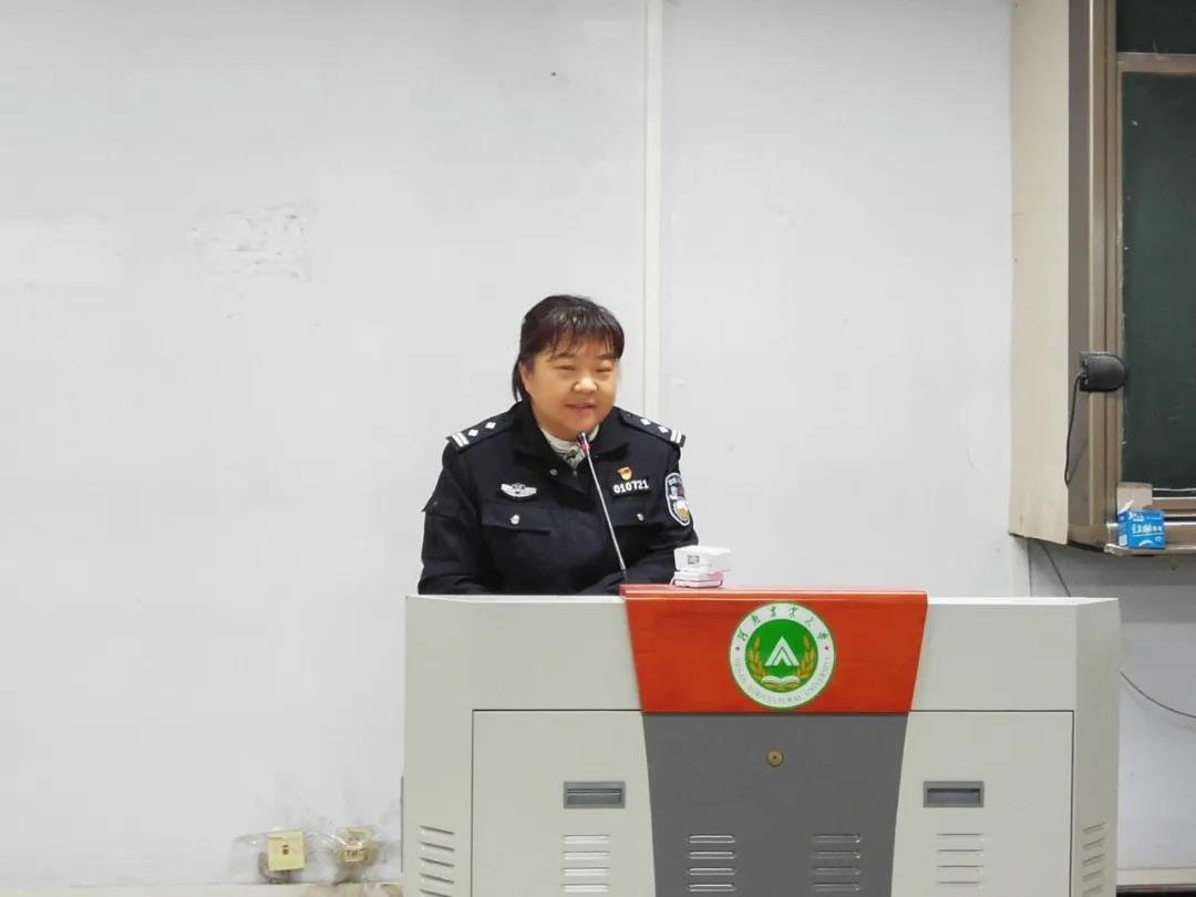 首先,尹岩岩向同学们问好,并表示,会站在民警的立场上帮助同学们提高防范意识,避免上当受骗。随后,她指出,近年来盗窃、诈骗案件层出不穷,花样百出,令人防不胜防。对于涉世未深的大学生,更应该把自身安全放在首要地位,保管好自己的贵重物品,不要随意泄露自己的个人信息,以免陷入“校园贷”等网贷泥潭中无法自拔。接着,尹岩岩向同学们列举了发生在宿舍、篮球场等场所的具体案例,提醒同学们要看管好自己的贵重物品,不要脱离视线范围,避免盗窃案件的发生。最后,尹岩岩告诫同学们不要轻易相信陌生人的花言巧语,牢记“四个不要”具体内容,并希望同学们之间能够相互理解,共同进步,学业有成。
