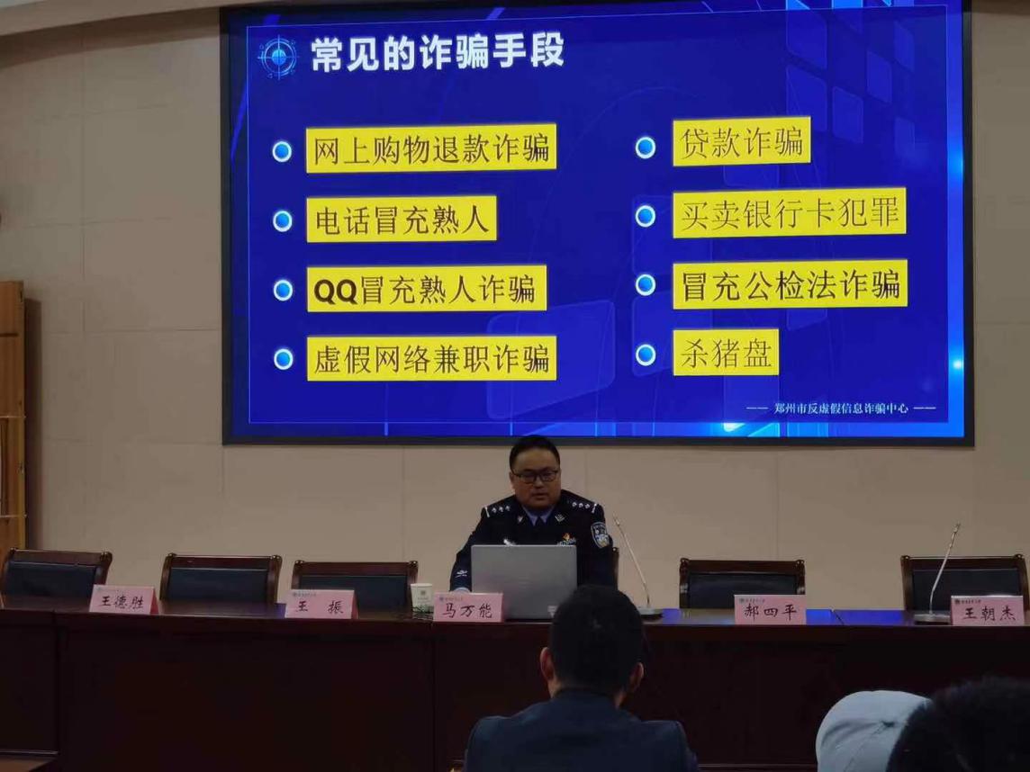 特别邀请郑州市文化路派出所马万能等警官做防诈骗安全报告教育会,辅导员许龙和澳门银河App