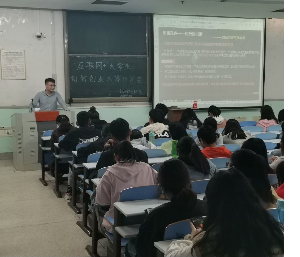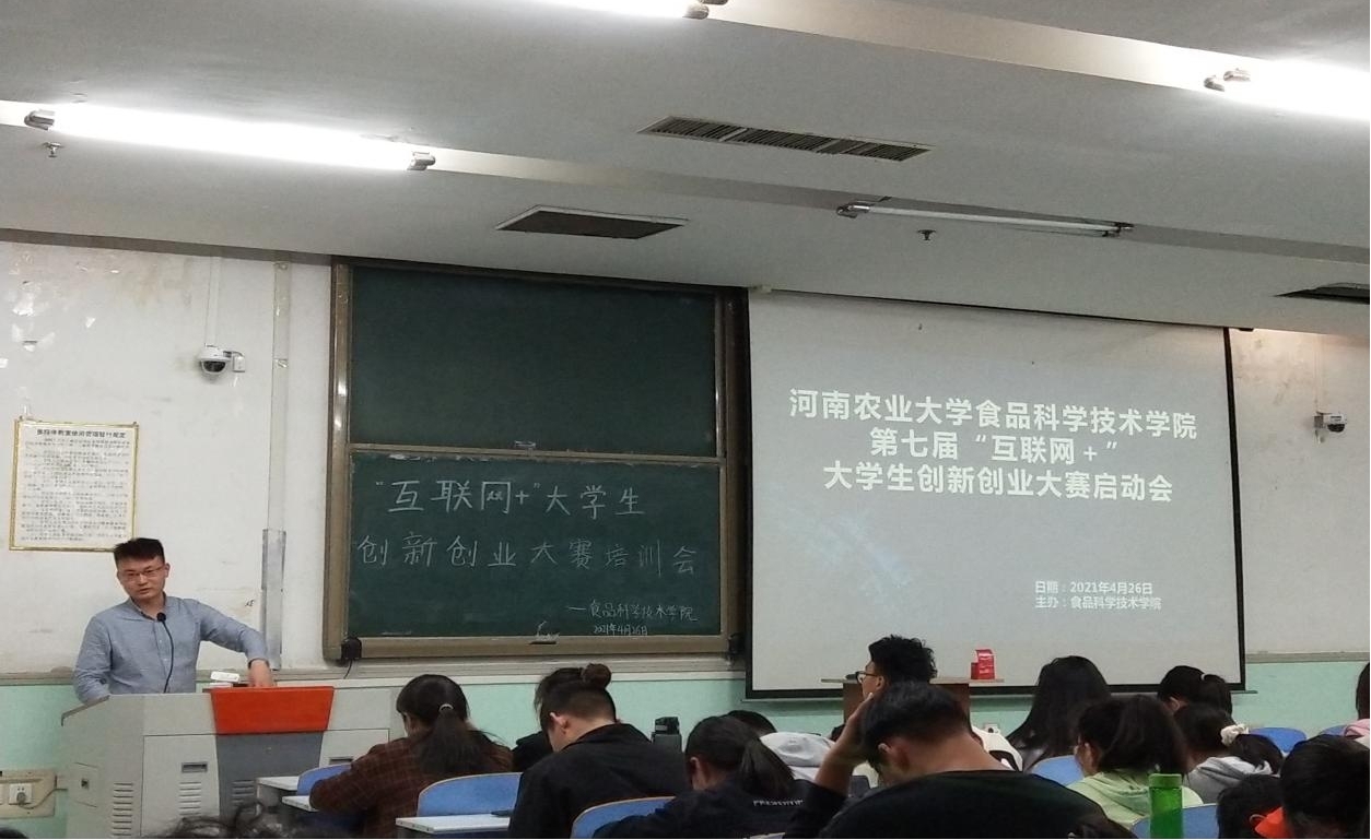 于4月26日中午在工程楼举办第七届“互联网+”大学生创新创业大赛培训会,由院团委副书记陈翔主讲。