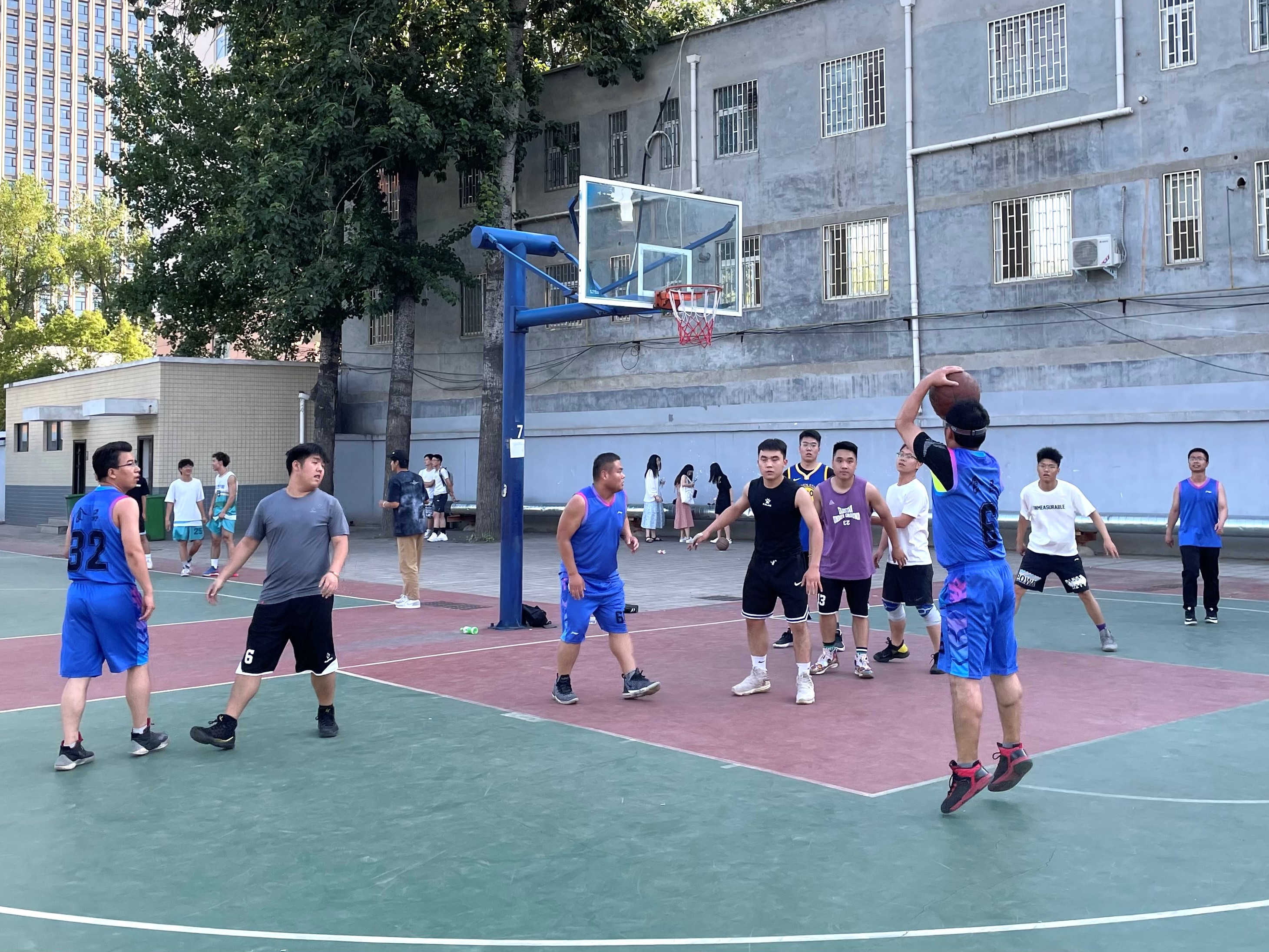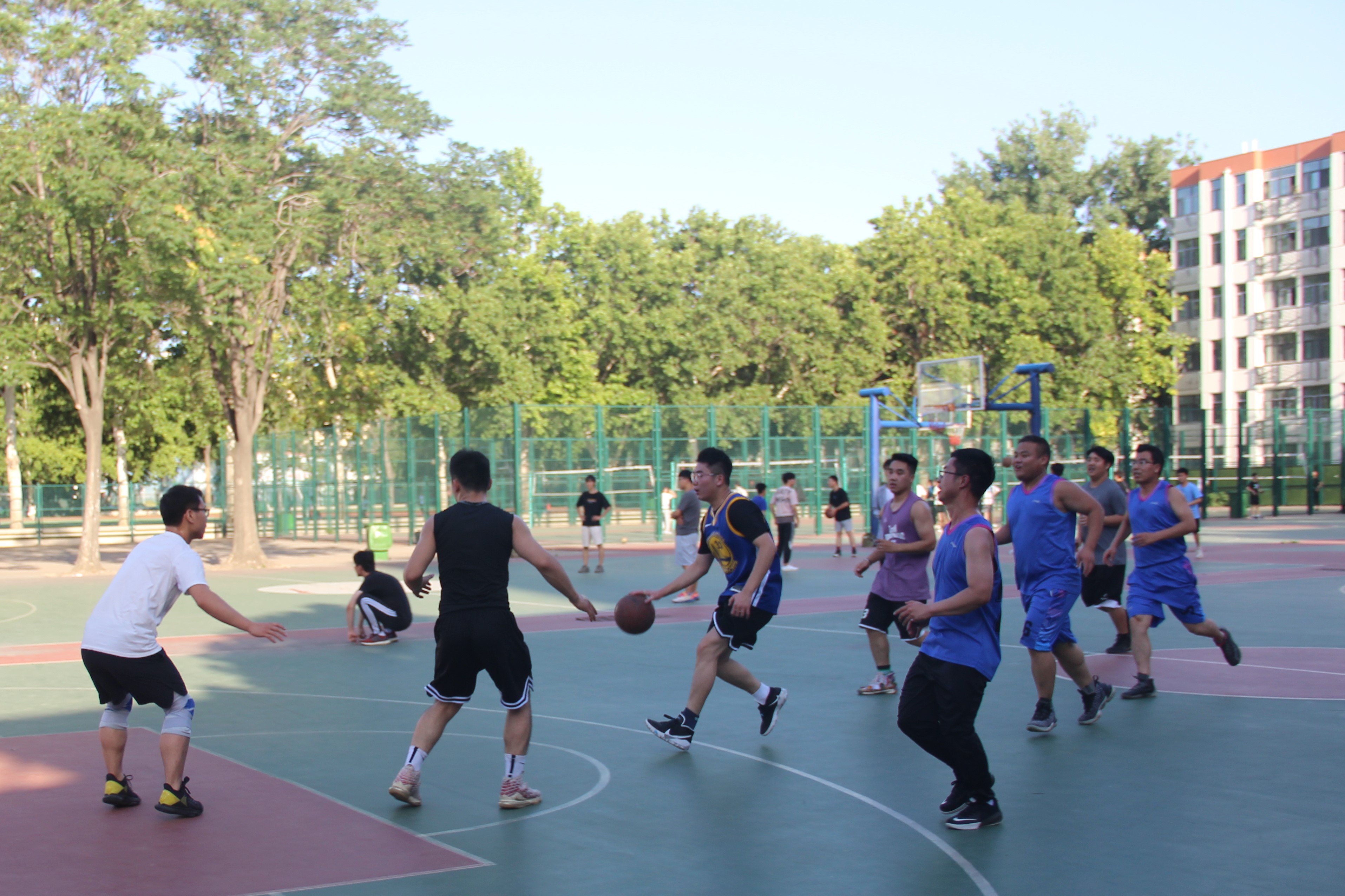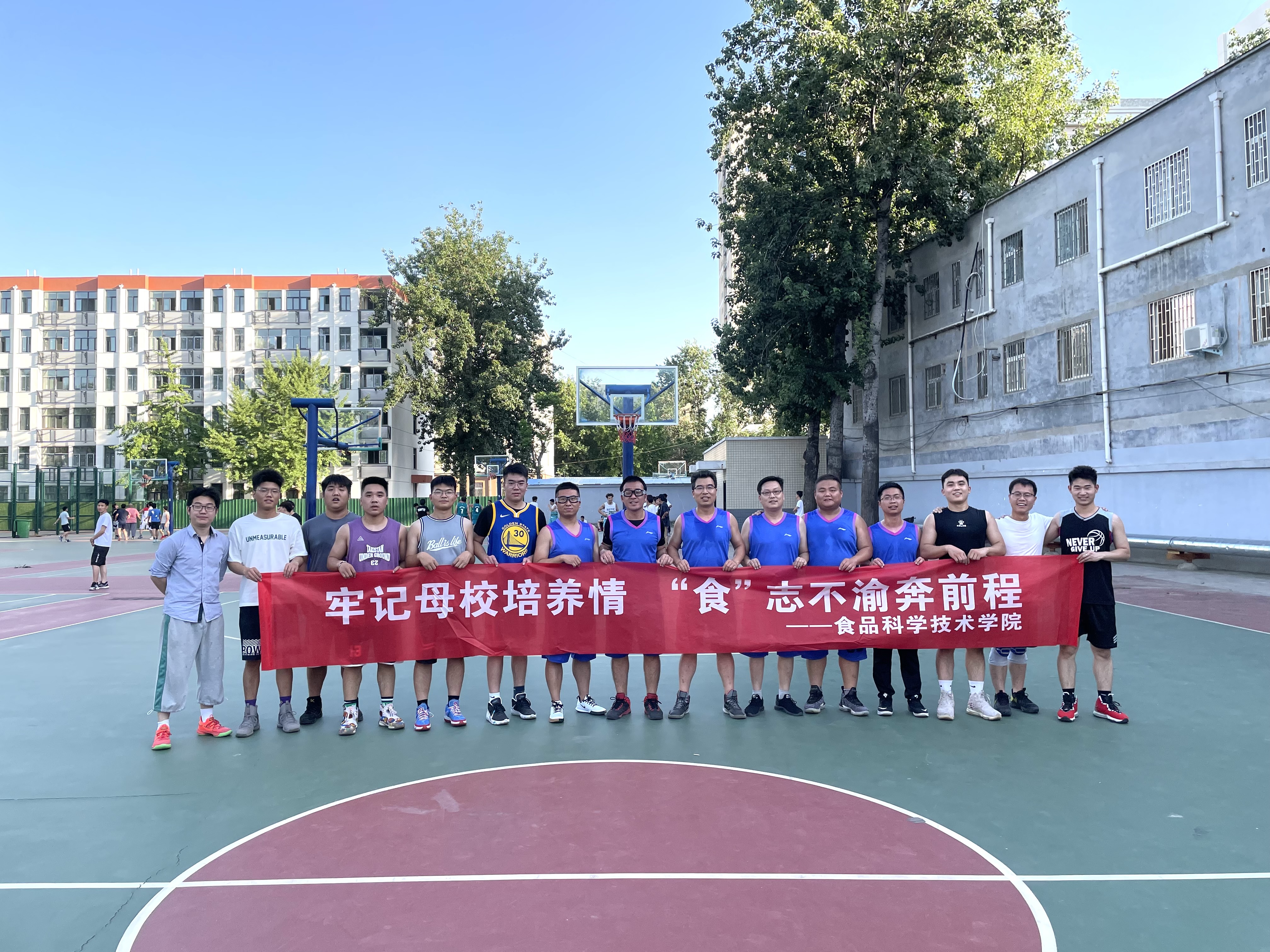 于文化路校区篮球场举办“牢记母校培养情,‘食’志不渝奔前程”主题教职工与毕业生篮球赛,教职工代表队、毕业生代表队参加此次比赛。