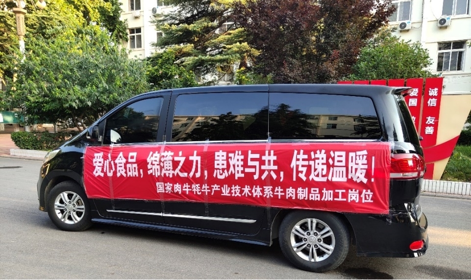 7月25日凌晨6点,团队教师成员祝超智、崔文明及研究生李嘉辉、茹昂、高浩源等从郑州出发,到达驰援河南水灾的武警驻扎基地为他们提供了肉制品100余斤,救援武警收到命令驰援郑州后,已经连续奋战三天,由于物资短缺,基本靠面包等方便食品维持,几天都不曾吃过热饭,此次由国家肉牛牦牛体系提供的肉制品非常急需,便于解放军补充能量,继续投入战斗。为了给武警官兵留下宝贵时间,放下肉制品后,团队便即刻离去,赶往灾区。