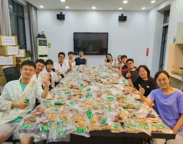 7月24日,实验室水电终于恢复正常,团队成员祝超智立刻召集留校研究生,发挥体系加工岗位专业优势,制定救援方案,为当地抗洪救灾工作贡献自己的力量。团队研究生纷纷响应号召,按照方案各司其职,即刻投入产品制作中。最终在7月25日凌晨2点,加工好各类熟肉制品达500余斤,并进行了单独包装和灭菌处理。