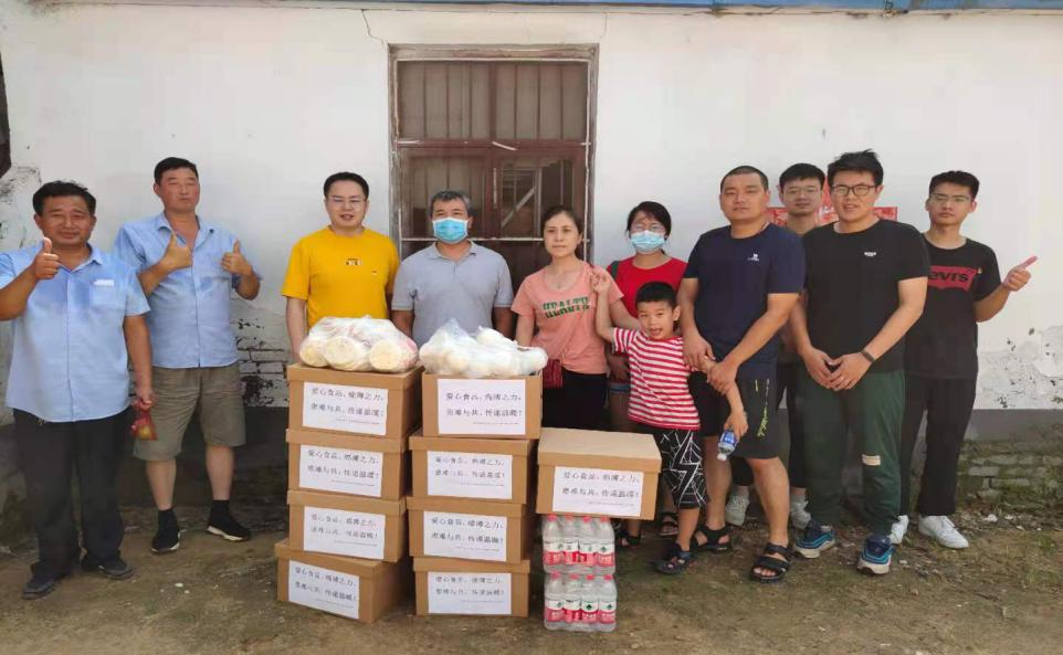 开封尉氏县庄头镇庄头村是贾鲁河泄洪点,暴雨四天后,当地水位依然很高,物资极度匮乏,当得知消息后,祝超智一行带着加工的肉制品火速赶去。据村干部介绍,这里因泄洪导致多处居民房屋摧毁,居民被安置在澳门银河App