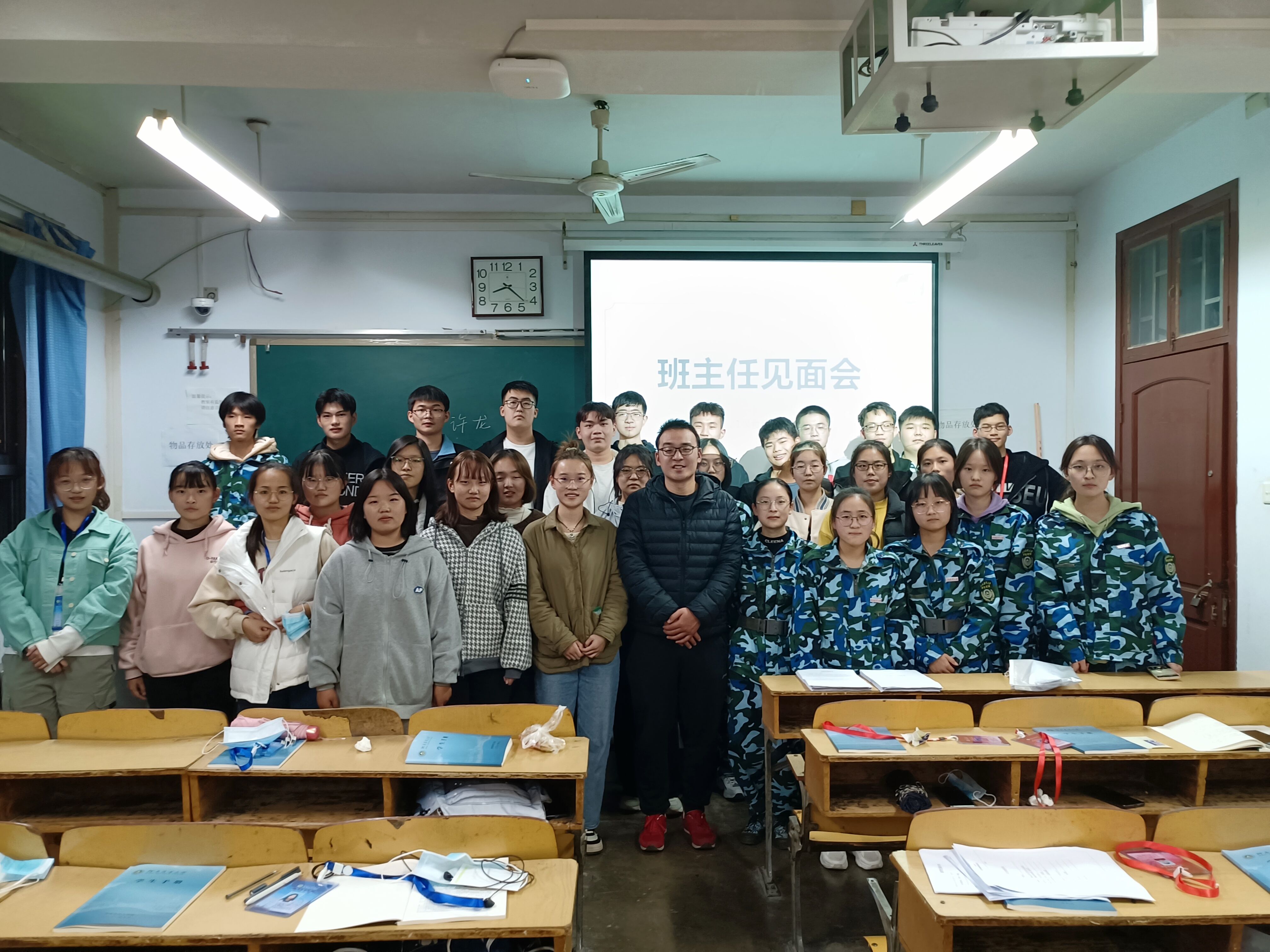 在日常管理等方面的规定,在今后的学习生活中,要脚踏实地,积极锻炼自己,充实自己的大学生活。提醒新生注意人身财产安全,增强自我防范意识,并强调疫情尚未结束,同学们应提高防疫意识,做好个人防护措施。同学们走上讲台畅所欲言,进行自我介绍,现场氛围轻松愉悦。同时,他们纷纷提出自己对大学生活的一些困惑,班主任和助班耐心地为同学们解答疑惑,扫清思想上的障碍。