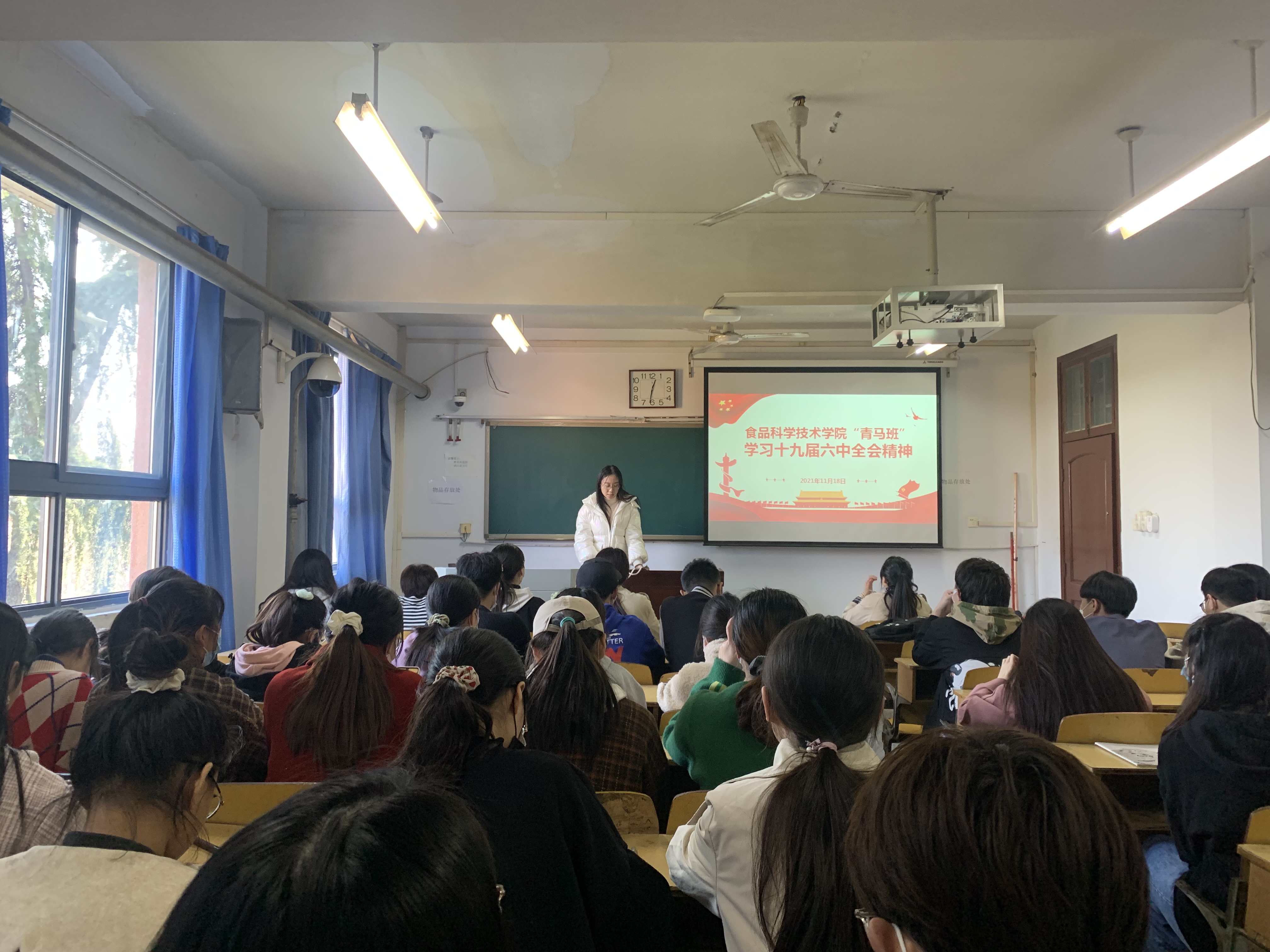会议伊始,路平简单介绍了本次活动的主要内容。她列举了身边的优秀典型事迹,希望同学们努力向他们看齐,坚定理想信念,把个人理想追求融入国家和民族的事业中去,抓住机遇,在奋斗中实现人生价值。接着,青马班团支书朱亚威带领大家共同学习了《中共中央关于党的百年奋斗重大成就和历史经验的决议》。最后,青马班成员积极发言,提出了自己对党的十九届六中全会精神的感悟。