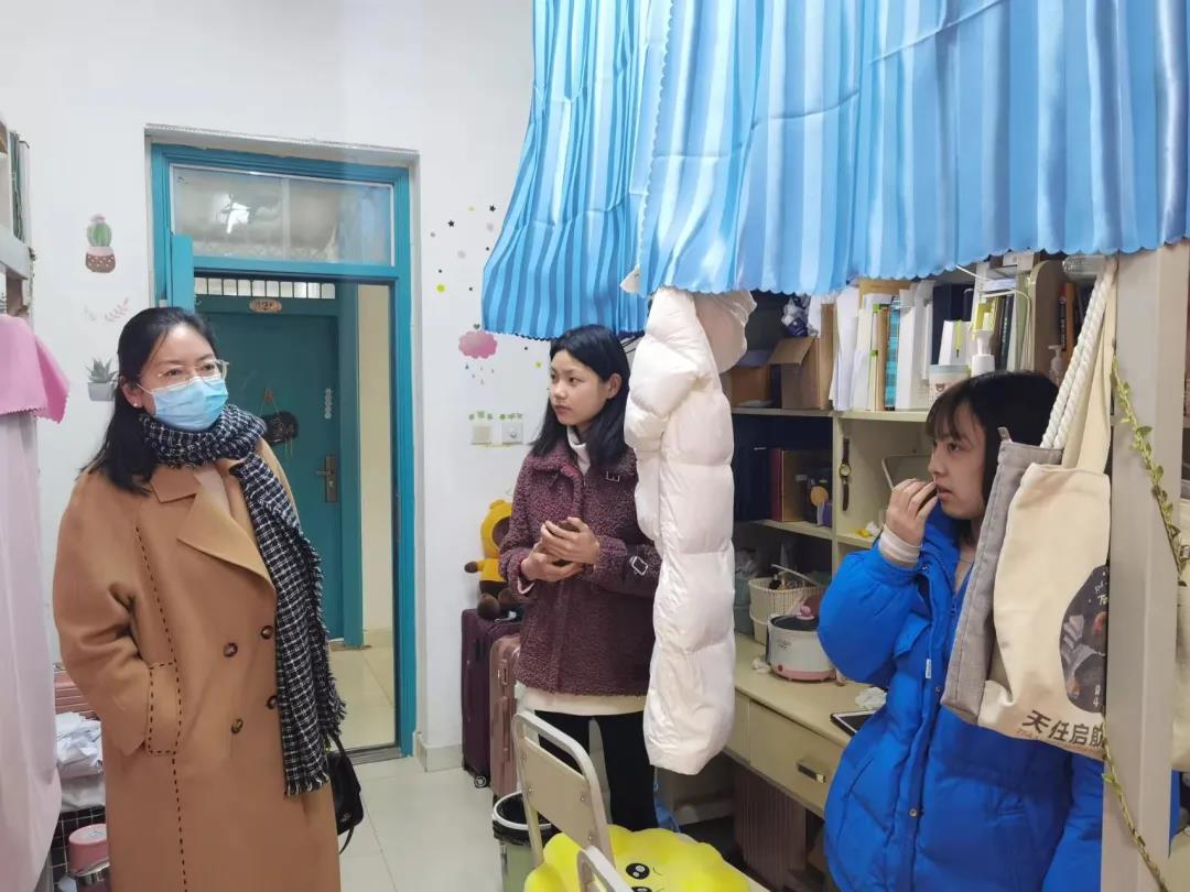 走访过程中,老师们贴心询问同学们的基本情况,关心同学们返校各方面的感受,同时提醒同学们尽快整理好宿舍物品,调整好心态,以积极的态度迎接新学期的学习活动。同时,老师们还特别提醒同学们要积极配合疫情防控工作,认真完成每日健康上报,若有身体不适及时和班主任联系,平时也要加强锻炼,提高自身免疫力。