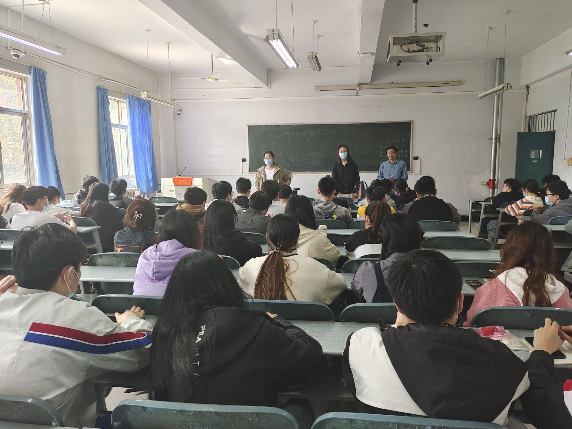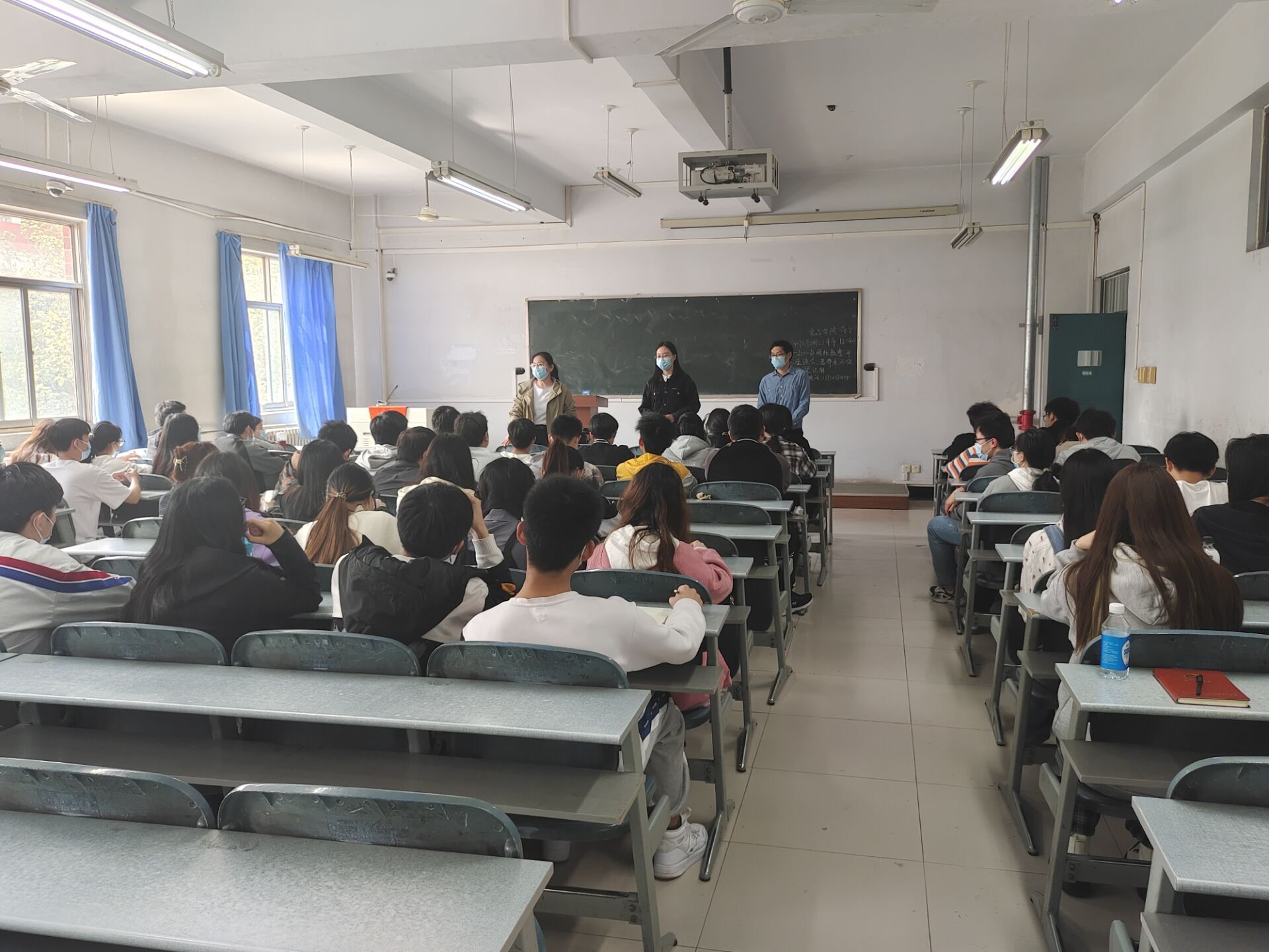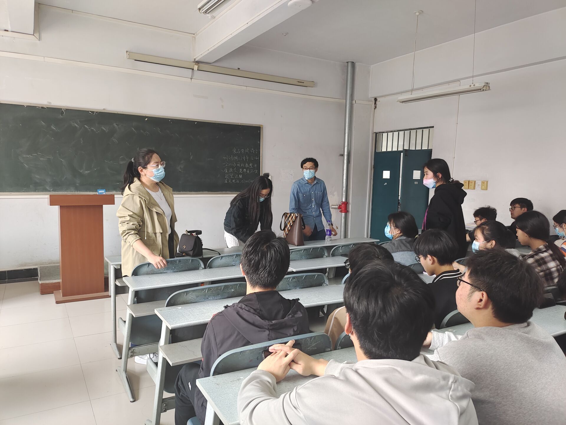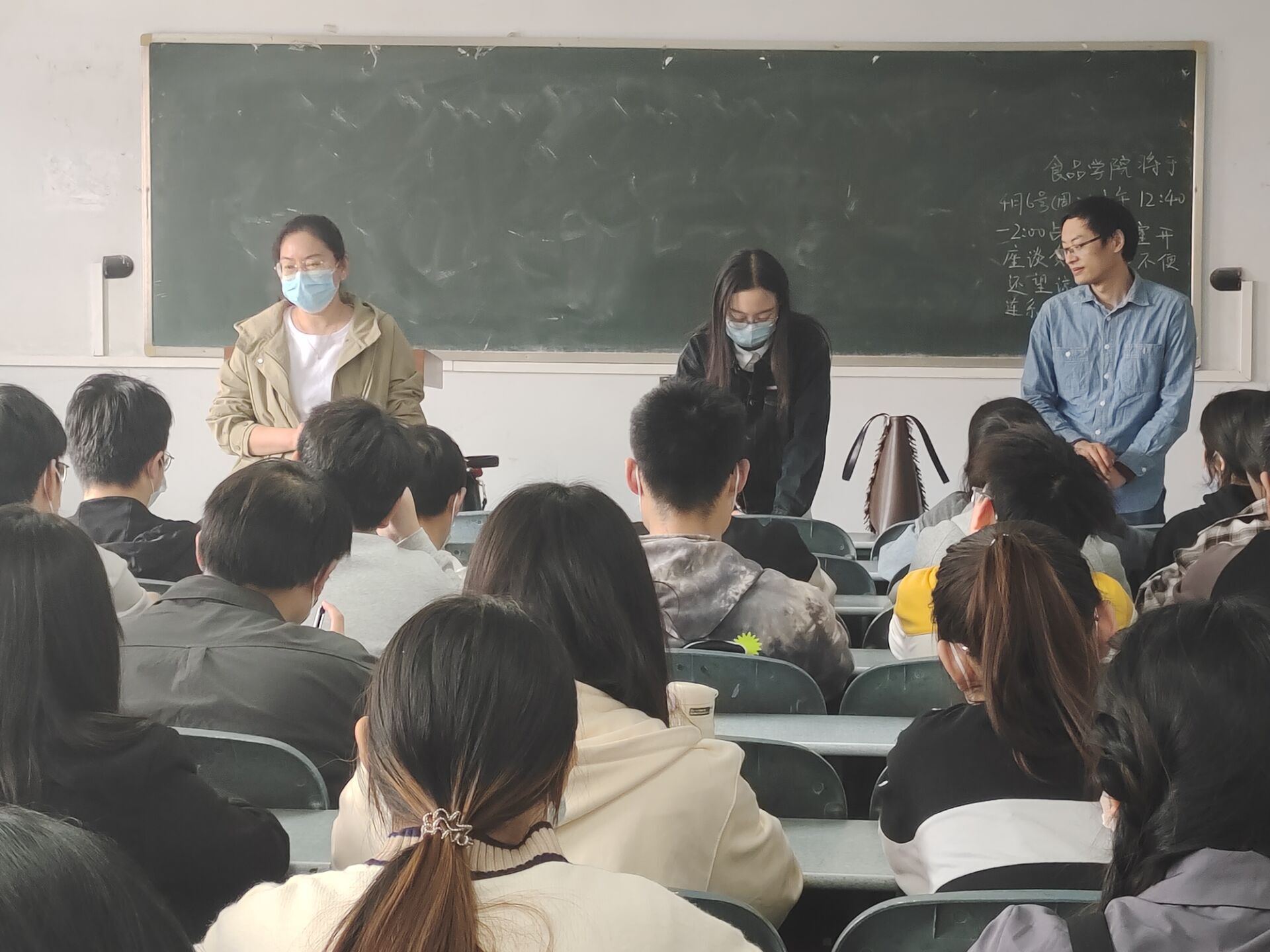 于文化路校区桃李园学生公寓桃西楼301教室召开桃李园封闭管理座谈会。院党委副书记李蓓蓓、院团委书记路平、教学秘书李家寅出席本次会议,21级部分学生参加。