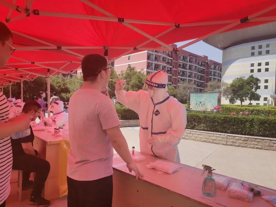 志愿者的引导下,同学们带好口罩按照规定的检测时间,分批错峰到达采样现场,依次在登记区完成信息登记后,由医务人员进行核酸采样。在志愿者的配合帮助下,整个过程井然有序,志愿者们的积极行动,为疫情防控工作贡献了一份属于自己的青春力量。