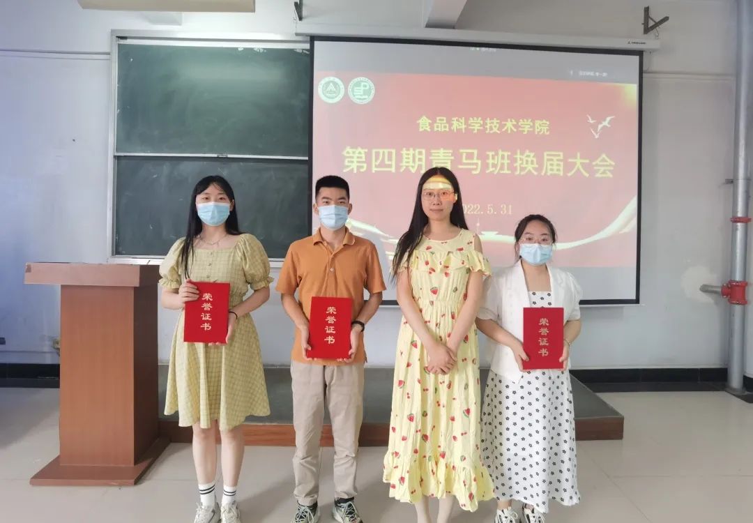 第四期青马培训班顺利结业学员名单。路平,张金龙依次为优秀学员颁发荣誉证书,为第四期青马班毕业学员代表颁发结业证书并扣上“青马培训第一粒扣子”。第四期青马班支书朱亚威对第四期青马班培训学习成果进行了总结汇报。她希望广大青马班成员要不牢记党的要求,为党的伟大事业奉献青春。张金龙宣读了第五期青马培训班学员及班委名单。路平为新一期青马班学员授旗。第五期青马班支书陈曦代表第五期青马班全体学员做出承诺,将进一步坚定理想信念,努力成为马克思主义的拥护者,实践者和传播者。