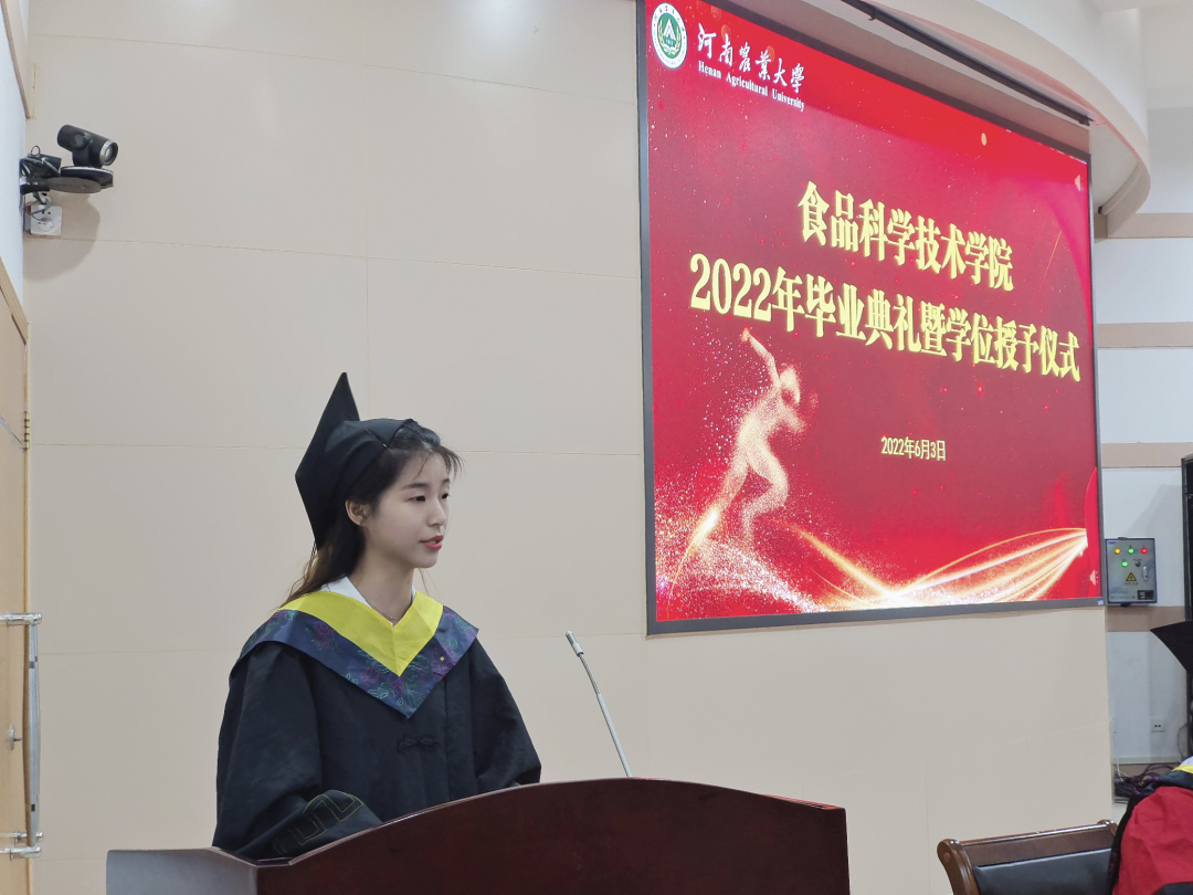 在2022届毕业生典礼上。张剑宣读了《关于授予2022届硕士生农学硕士学位的决定》和《关于授予2022届本科生工学本科学位的决定》。
