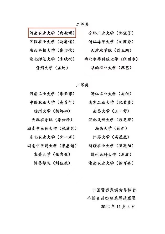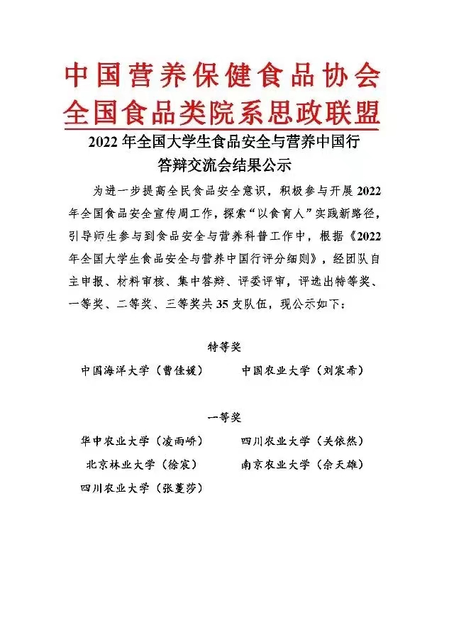 (通讯员 白毅博)近日,由中国营养保健食品协会和教育部全国食品类院系思政联盟共同组织的2022年全国大学生“食品安全与营养中国行”队伍答辩交流会顺利举办,澳门银河App