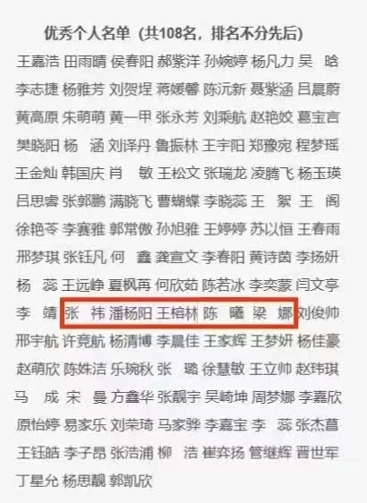 “微光”党史宣讲团荣获“优秀团队”称号,张祎、潘杨阳、王榕林、陈曦、梁娜5名同学荣获“优秀个人”称号。