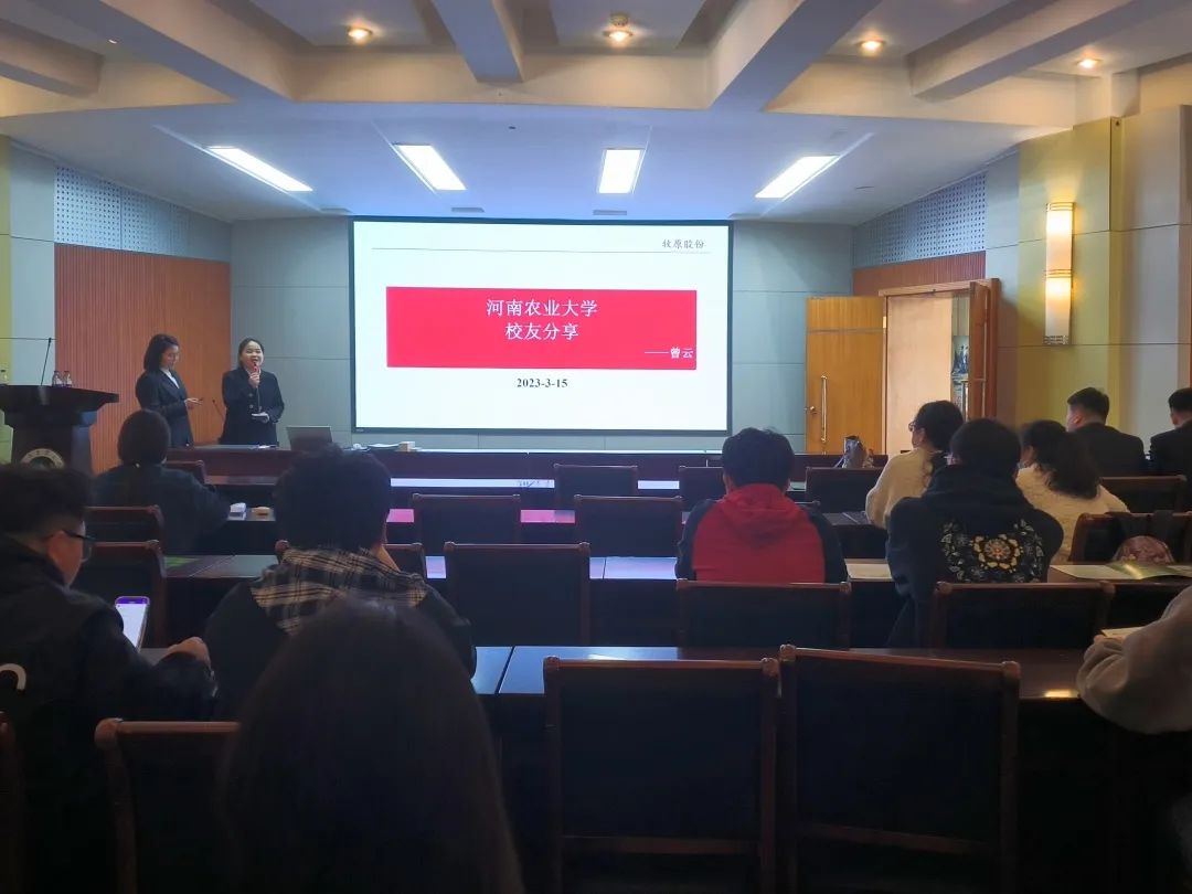 毕业生、牧原校友2020级食品加工与安全专业曾云、2019级食品加工与安全专业许淇、2021级农林经济管理专业徐洋进行宣讲,院党委组织员陈翔、2019级部分学生参加。