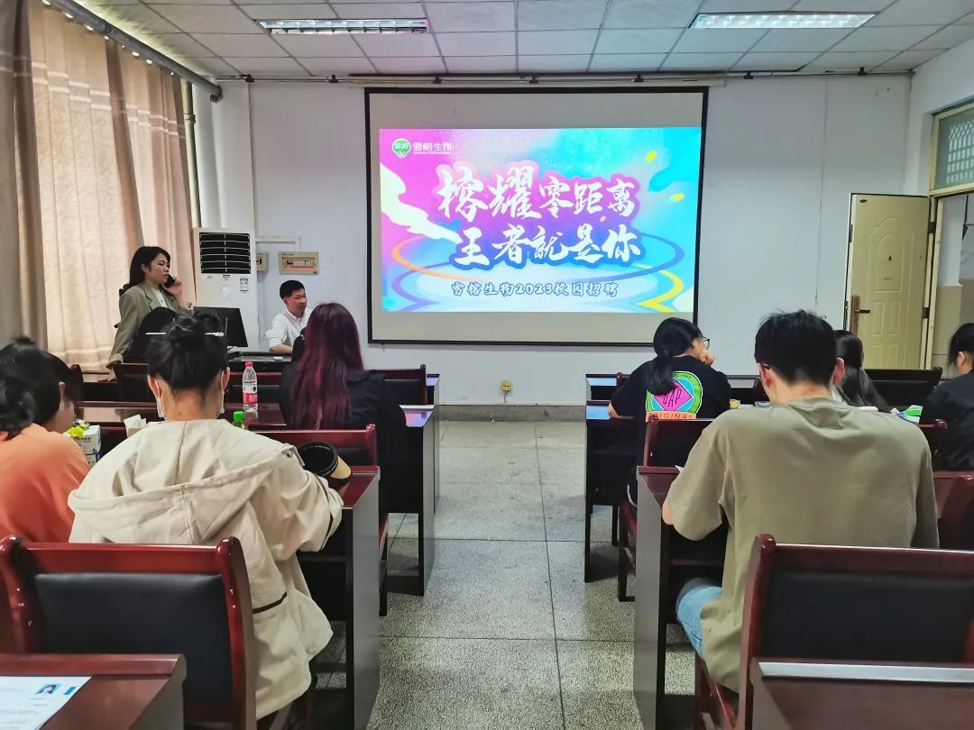 于文化路校区17号楼405召开上海雪榕生物科技有限公司校园招聘宣讲会,招聘副经理何陈燕主持会议,澳门银河App