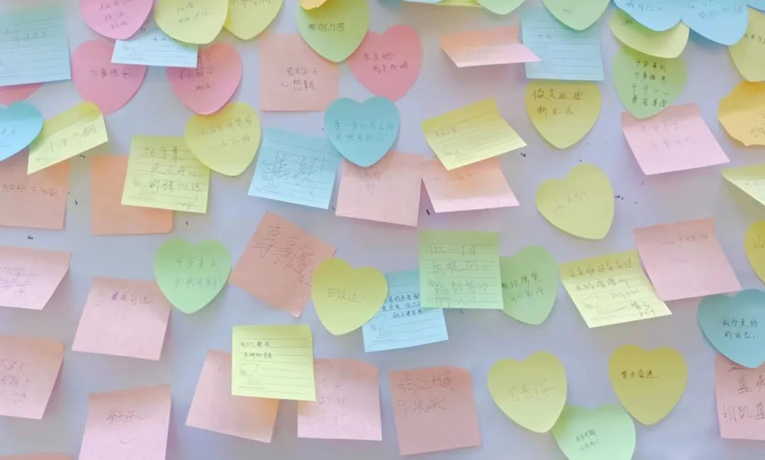 “跨越时空,与自己对话”,同学们有的在便利贴上写下自己对大学生活的憧憬或是对一年后的自己想说的话,有的在便利贴上写下自己的心事和联系方式,以此随机结识“想不到”的朋友。