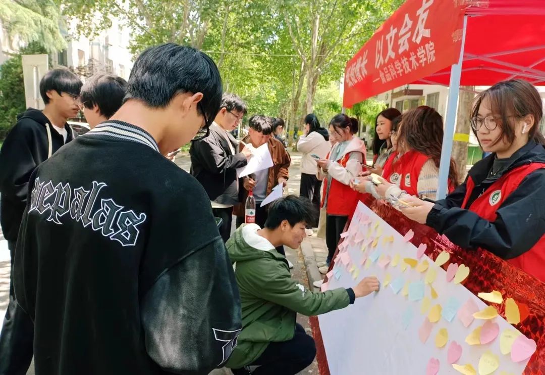 阳光志愿者协会于文化路校区校园超市门口举办“纸短情长,以书会友”主题活动。