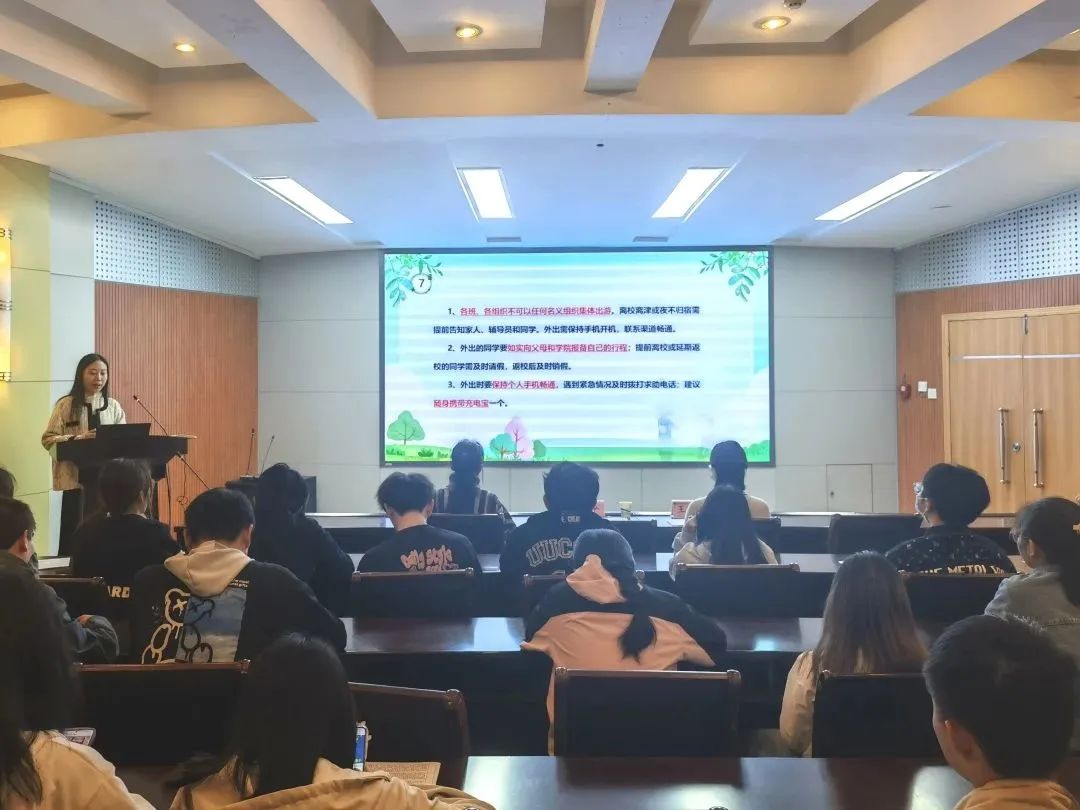 于文化路校区一百人报告厅召开五一假期安全教育会议。院团委书记路平出席并担任主讲,22级食品四班班主任赵阳、食品六班班主任王晓杰出席会议,学生骨干及22级学生参会。