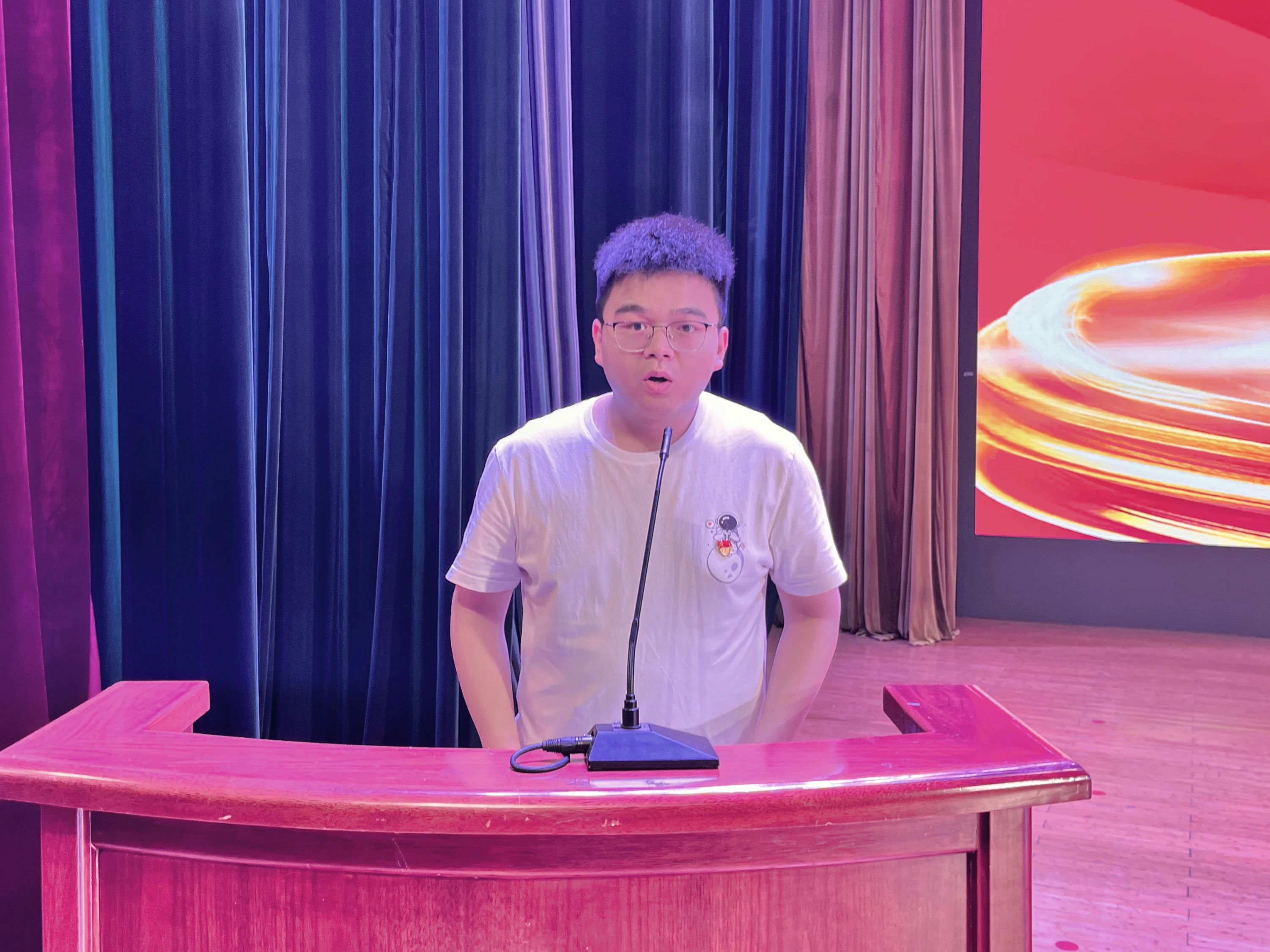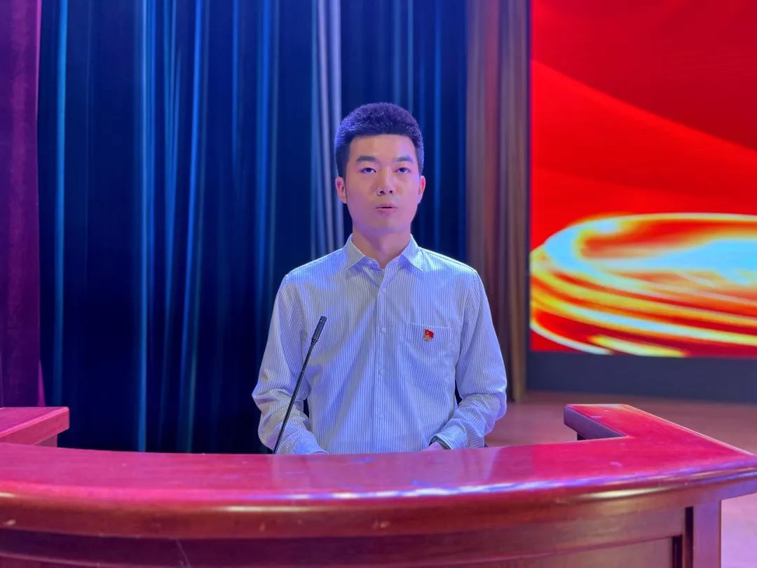 新党员代表段盛杰发言,他表示今后一定以党员标准,严格要求自己,牢固树立全心全意为人民服务的意识,为中华民族伟大复兴贡献青春力量。