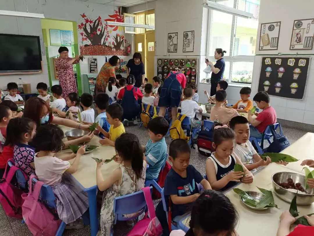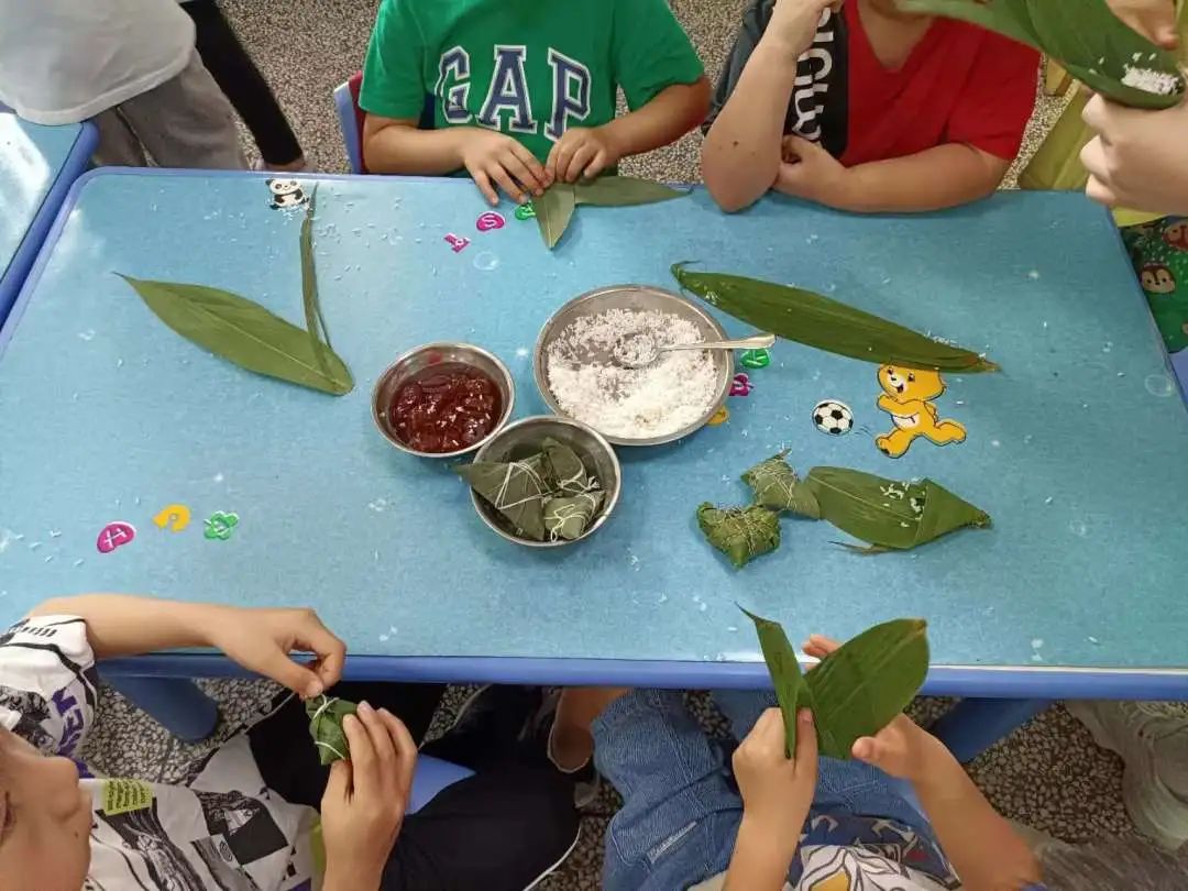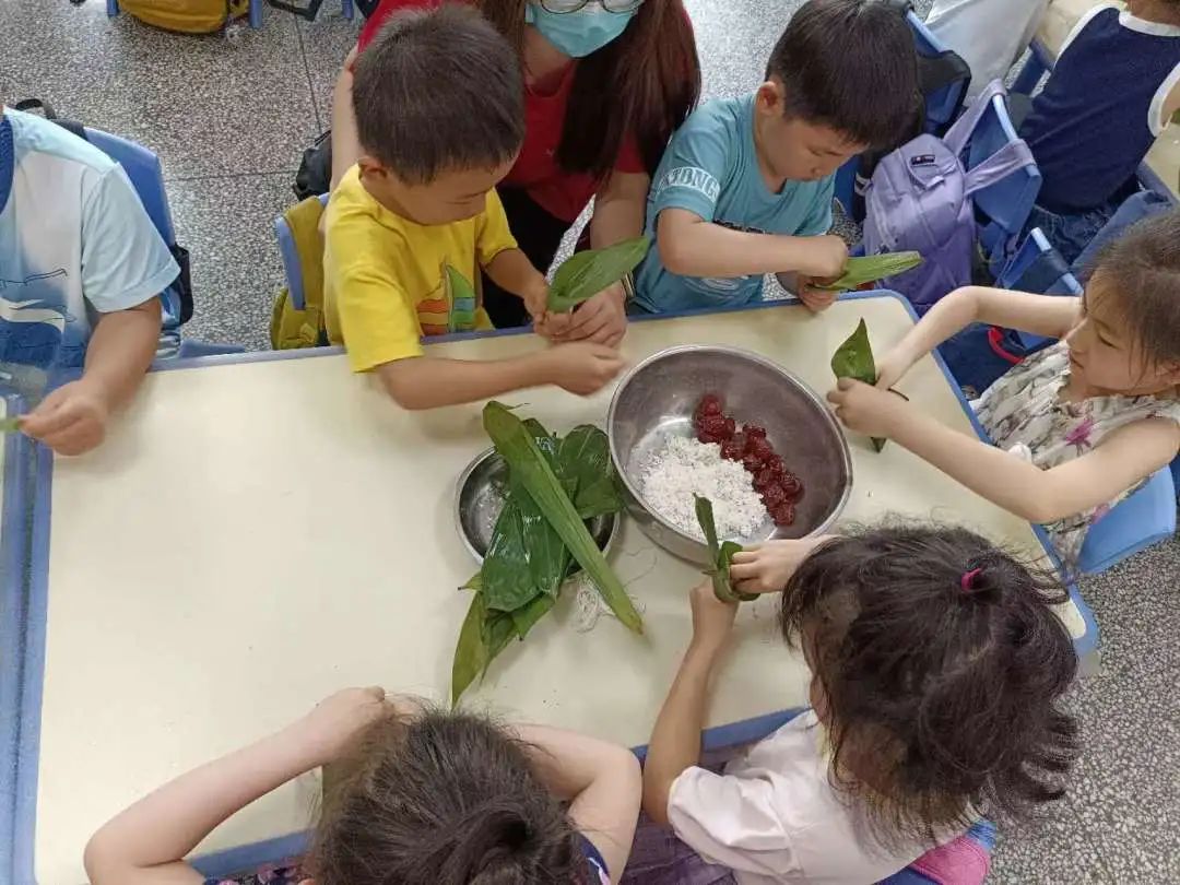 附属幼儿园开展“粽子小小手,快乐包满堂”活动,部分同学参加活动。