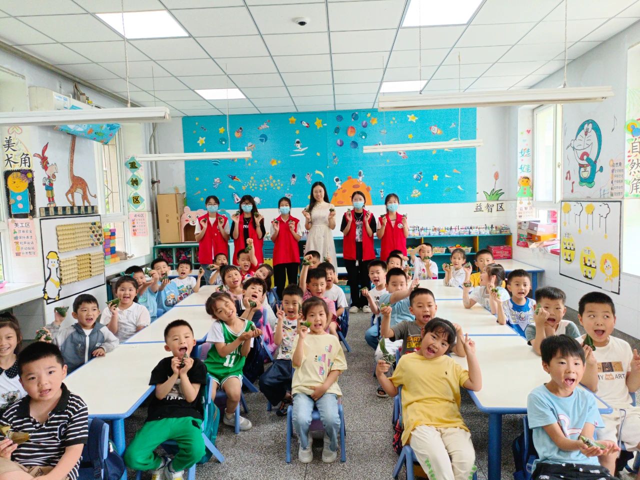 包粽子活动伊始,志愿者们生动地讲解了端午节的独特风俗,鼓励小朋友们传承和弘扬传统文化精神。随后,志愿者和幼儿园老师们向小朋友们详细介绍了包粽子的方法,并亲手示范。在包粽子的过程中,小朋友们积极参与并在实践中深入体会了中华优秀传统文化的内涵。教室里其乐融融,一片欢声笑语,充满了温暖和关爱。