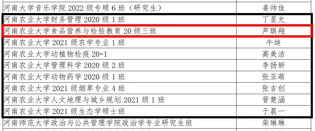食品营养与检验教育20级三班芦琪翔获评“河南省文明学生”。