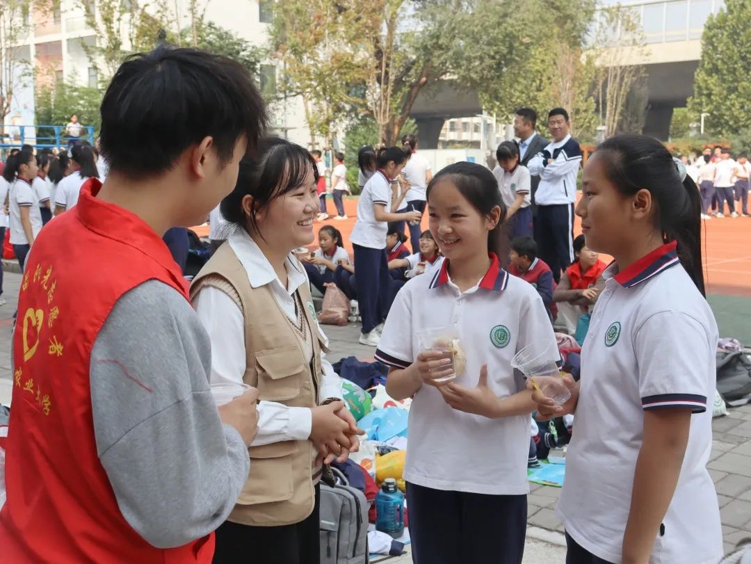 活动共分为五个区域 ,在休息区澳门银河App 为附小附中的学生提供冰糖雪梨温开水,帮助他们进行运动后水分与营养的补充,同学们遵守规则,自觉排队。