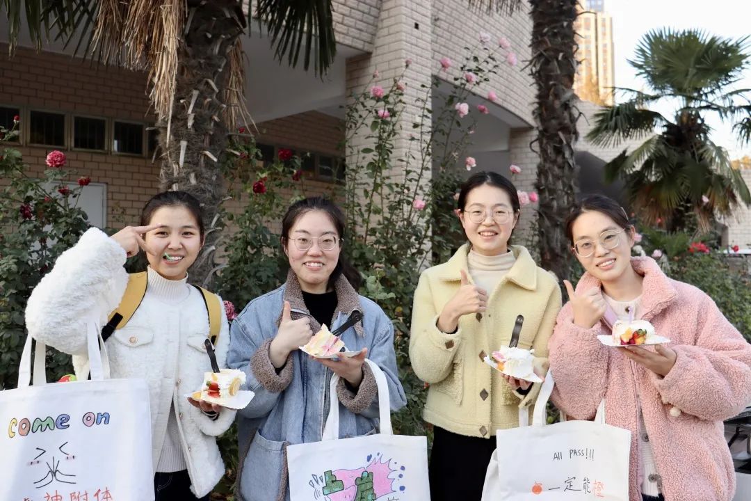 活动形式多样,意在为毕业生送温暖。活动现场准备了两米长的“定胜”糕,寓意一定胜利高中,让毕业生们品尝美味的蛋糕,并进行了丰富多彩的心理减压小游戏:“无敌幸运轮”“乘风破浪”“超越自我”“鱼跃龙门”“前程万里”“一举夺魁”,毕业生们通过挑战自我、轻松减压,舒缓紧张的心情;志愿者为毕业生送上考研上岸专属礼物-精美帆布包,帆布包上的图案是来自研究生和低年级同学亲手绘制,绘满了对毕业生的祝福;身穿旗袍的志愿者为毕业生送上澳门银河App