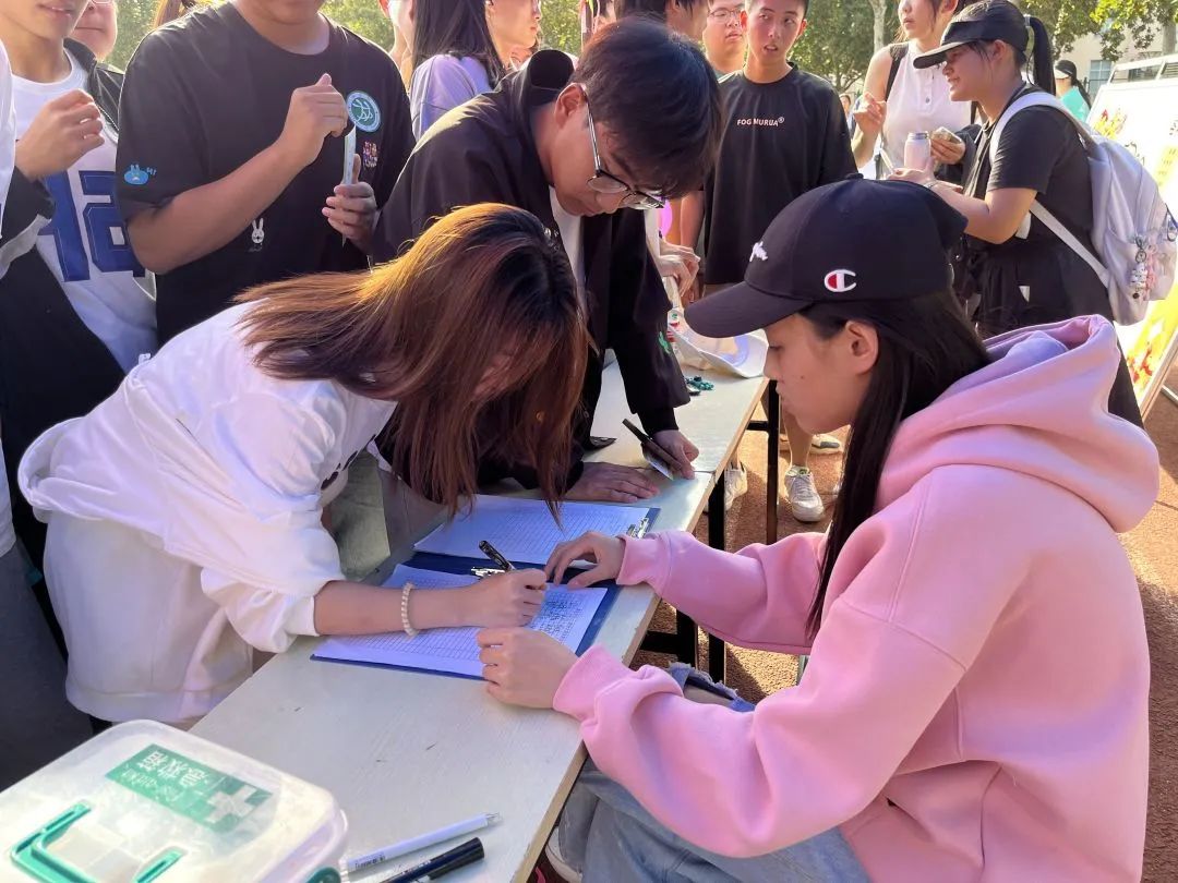同学们对此兴趣深厚,积极报名参加,现场同学们互相嬉笑玩闹,脸上洋溢着微笑。