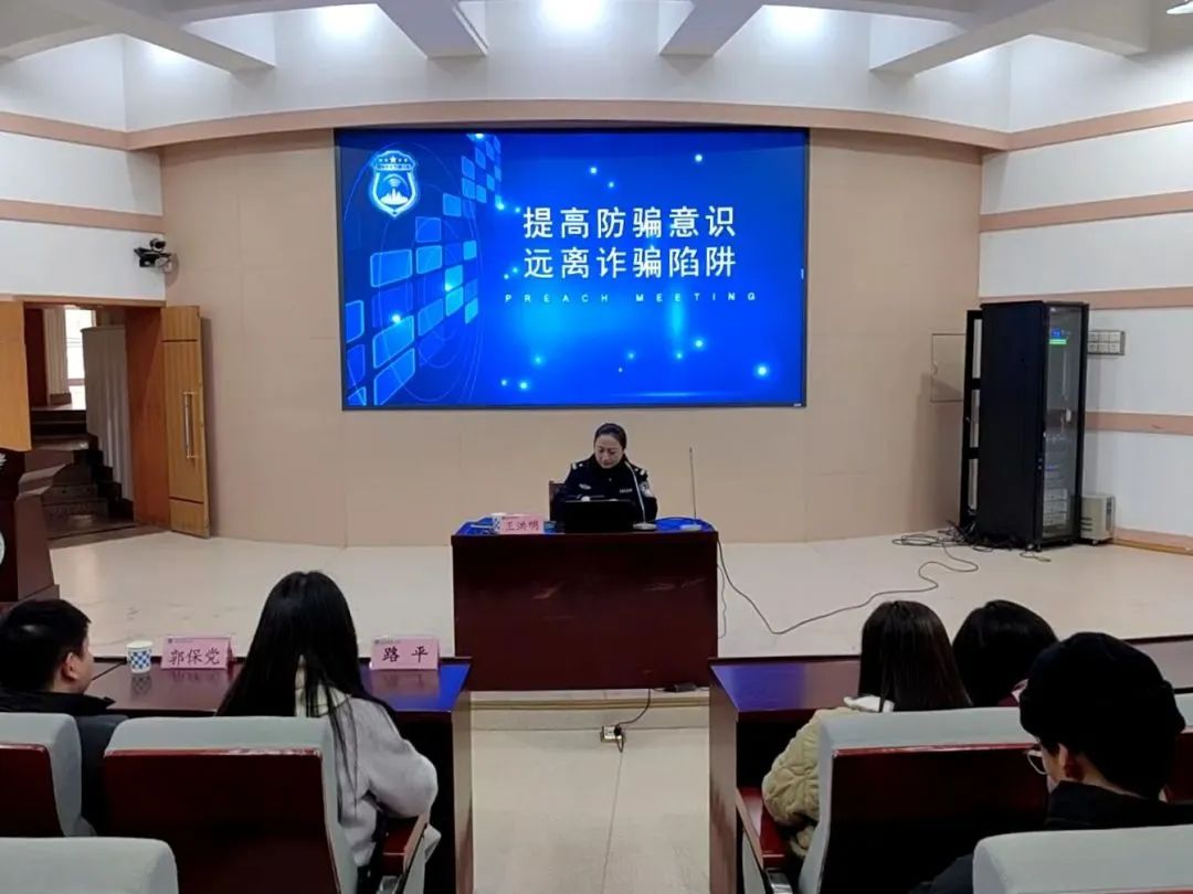 园里,学生们面临着各种安全风险,并强调,安全意识具有很重要的意义。她表示,要时刻保持警惕,不轻信陌生人,注意个人财物安全。在会议期间,她为大家讲解了自我防护的方法及诈骗分子的常用手段,她用幽默风趣的语言、真实生动的案例为同学们讲述被诈骗的真实案例,会场气氛活跃,同学们热情高涨。最后,她希望大家在校园内能做到时刻保持警惕,同时关注周围同学的安全;在网上,也要注意保护个人隐私,不轻易泄露个人信息,防止上当受骗。