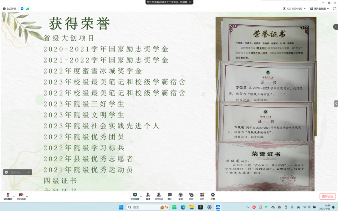 会议最后,在场评委老师进行交流讨论,将根据同学们的履历和表现推荐5个省级优秀毕业生名额及13个校级优秀毕业生名额。