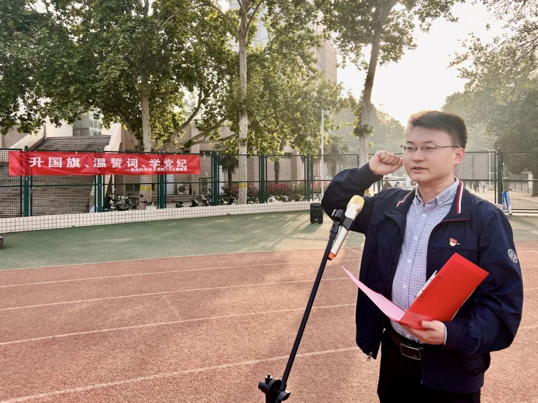 院党委书记赵改名指出党纪是党的生命线,是维护党的团结统一,保持党的先进性和纯洁性的重要保障。他希望同学们牢记自己的初心和使命,保持对党的忠诚,做一名合格的社会主义建设者和接班人。严守党的纪律和规矩,做到心中有党,心中有责,心中有戒。他表示,同学们要共同努力,将这份誓言和担当转化为实际行动,为食品澳门银河App