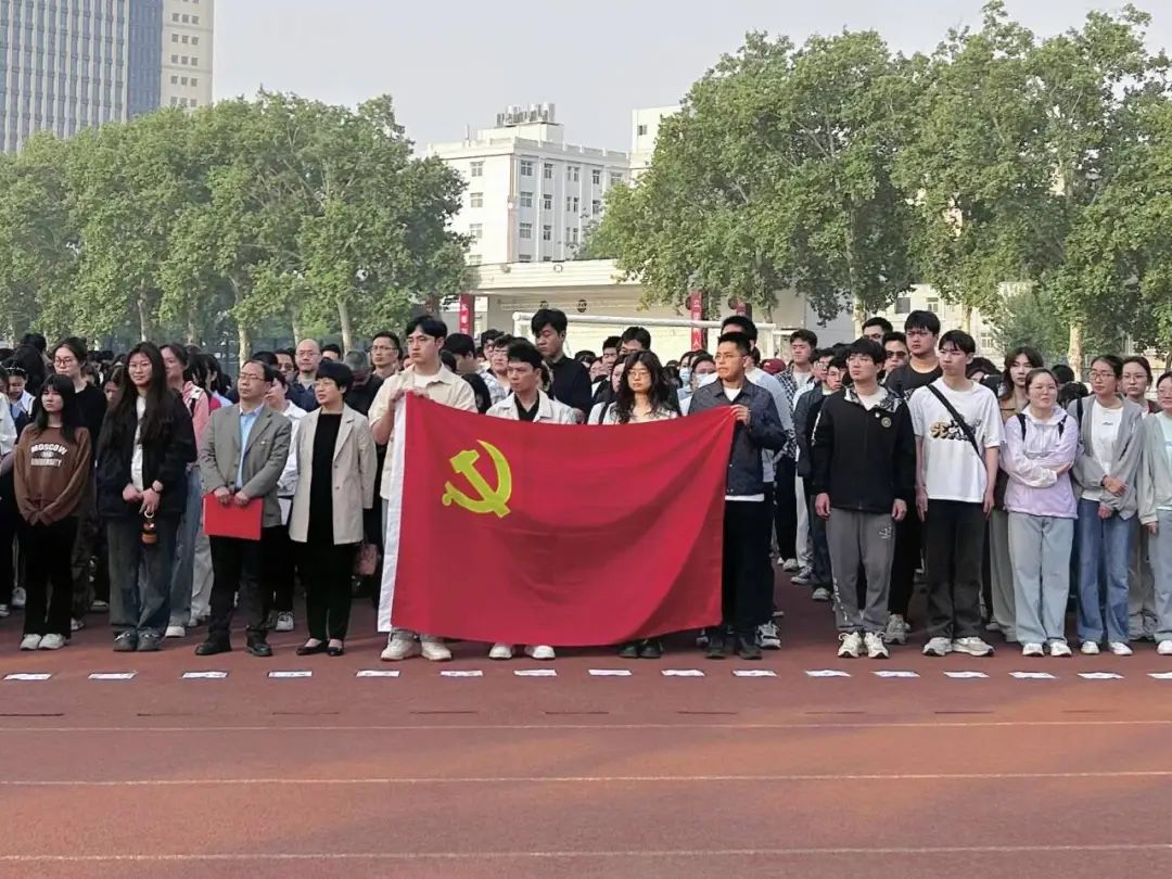于文化路校区举行“升国旗,温誓词,学党纪”主题升旗仪式暨党日活动,院党委书记赵改名,副院长张剑和全体党员及师生参加活动,此次活动由院党委副书记李蓓蓓主持。