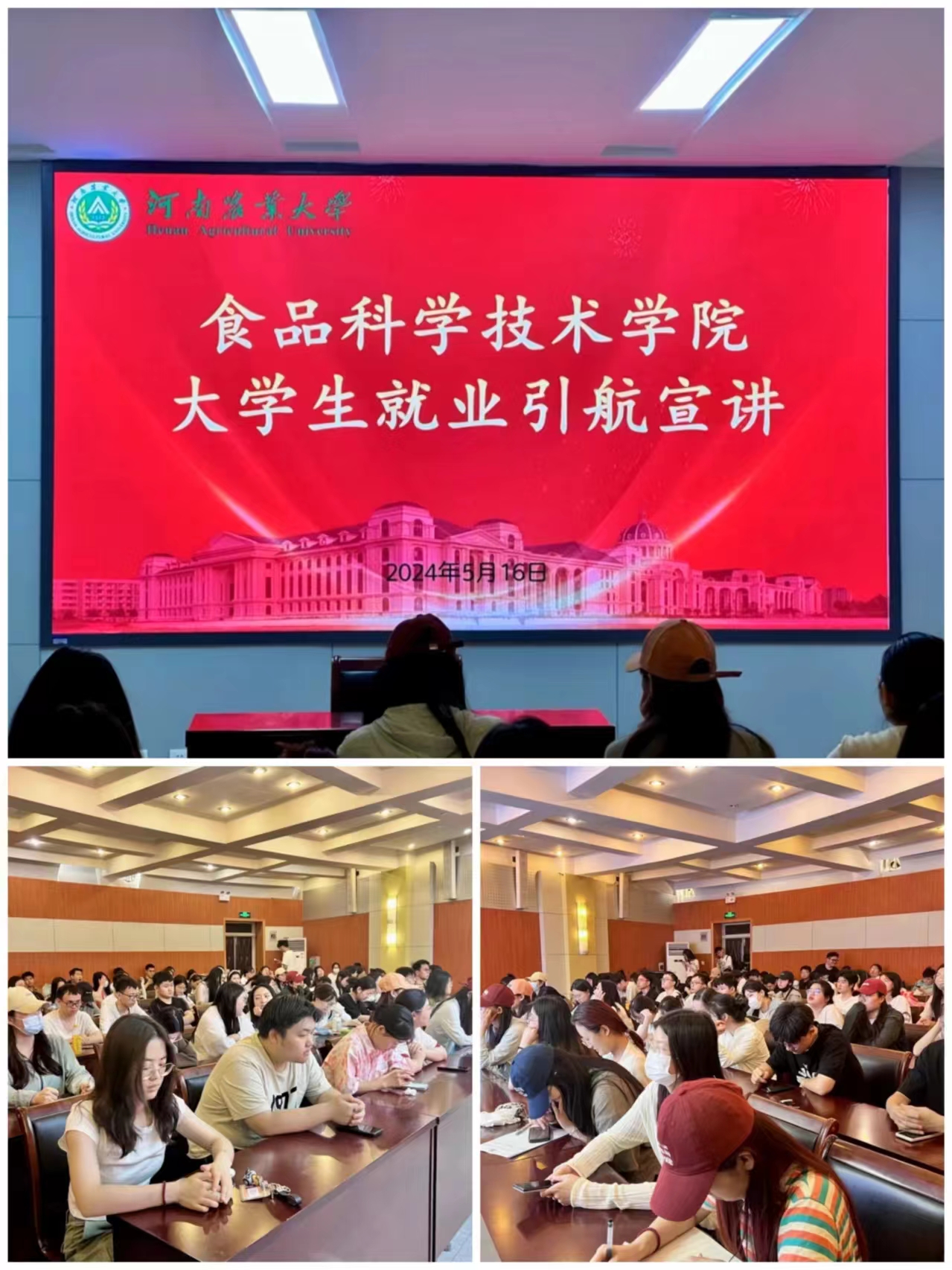 (通讯员 苏彦颖 盛雨晴)为进一步促进毕业生就业发展,提供更好的就业指导服务,5月16日上午,澳门银河App 于文化路校区一百人报告厅举办就业引航宣讲会,院团委书记路平、院团委副书记张金龙出席会议,2020级未就业学生参加会议,此次会议由就业典型20级食品质量与安全三班胡雪源主讲。