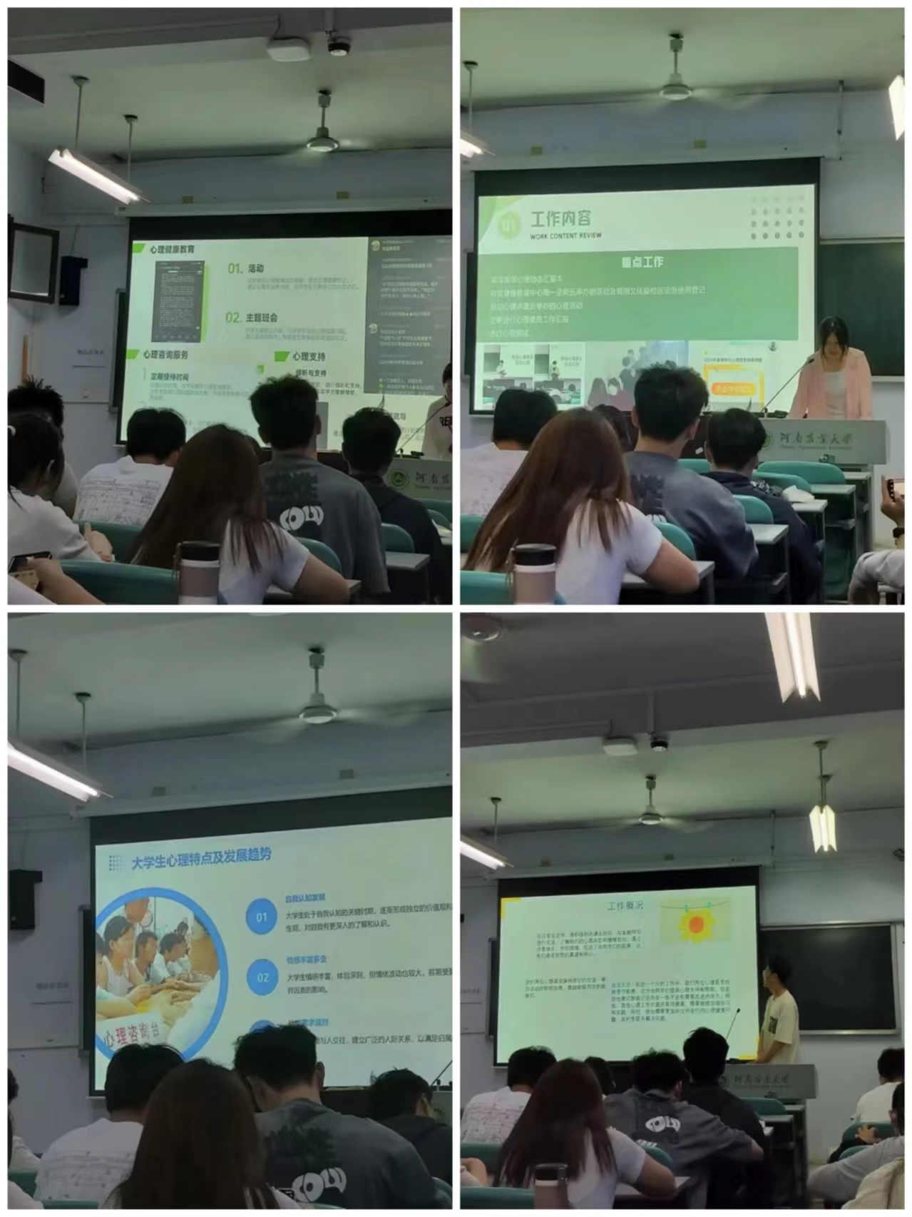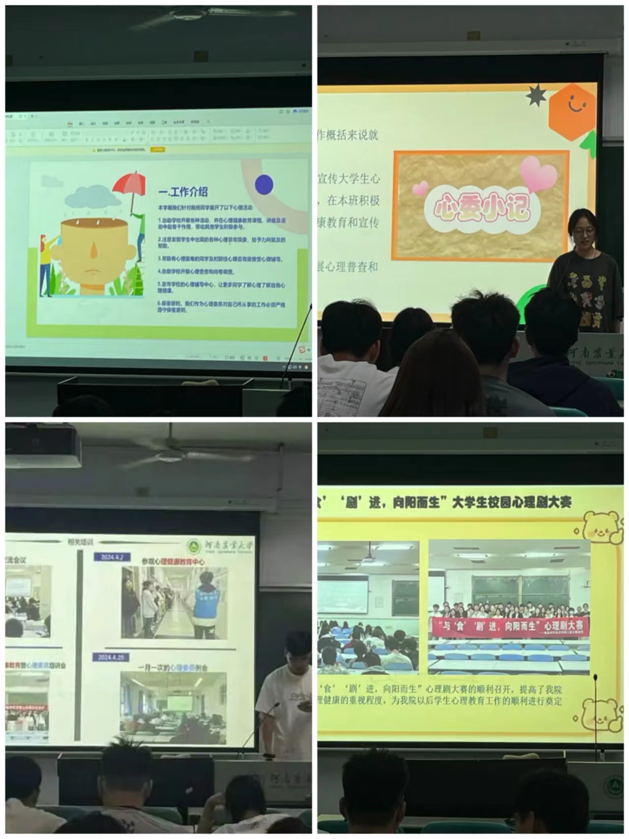 会议伊始,刘思含向同学们介绍了心理健康宣传周的活动安排。她鼓励,各班同学积极参与,她强调,在活动中要注意安全问题,遵守活动秩序。随后,各班心理委员依次上台汇报工作。他们表示,心理健康问题的重要性不容忽视。在工作中,各心理委员尽职尽责,积极完成各项任务的上传下达,注重与班级同学的沟通交流,在平时的工作中,仍存在沟通不及时、资源不足等问题。未来,各心理委员将继续努力,为班级同学的心理健康保驾护航。