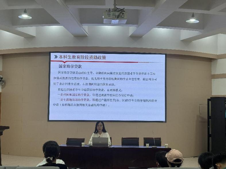 随后,在助学贷款还款方面,介绍了其还款要求、还款方式、违约责任、失信惩戒,提醒学生重视个人信用记录,按时还本付息,避免造成后续不良影响。