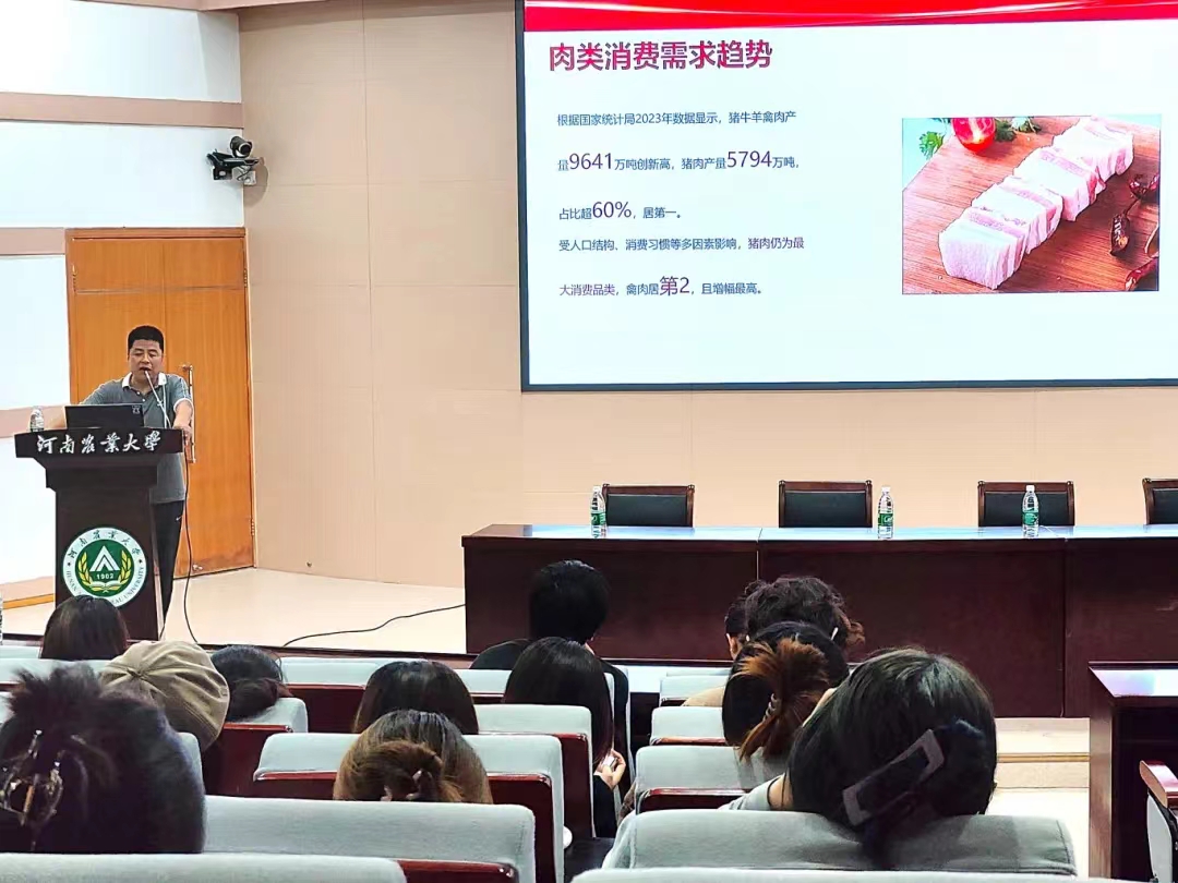 宣讲会伊始,王锐发表了精彩的开场致辞。他强调,食品人应心怀使命感,从消费者的需求出发,致力于让人民从吃得饱转变为吃得好。接着,他分享了自己最初对食品专业的认识,并指出食品行业并非世人所认为的那样狭隘,而是一个庞大的板块。