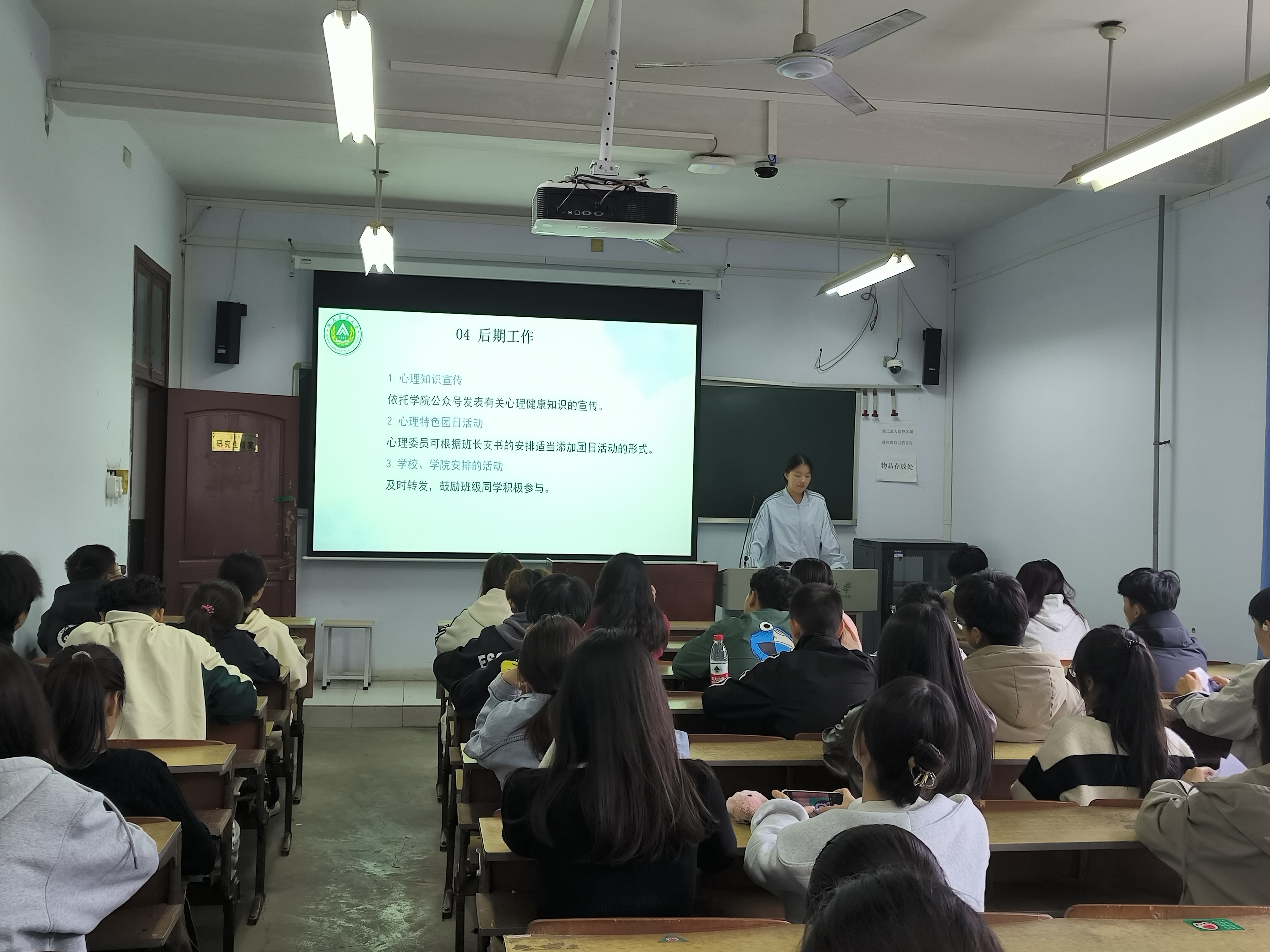 将会继续加强心理健康教育宣传,组织更多的培训和交流活动,帮助心理委员们更好地履行职责,为同学们提供更加专业、贴心的服务。最后,她向心理委员们介绍了心理健康宣传周的活动安排,鼓励各班同学积极参与,并强调在活动中要注意安全问题,遵守活动秩序。