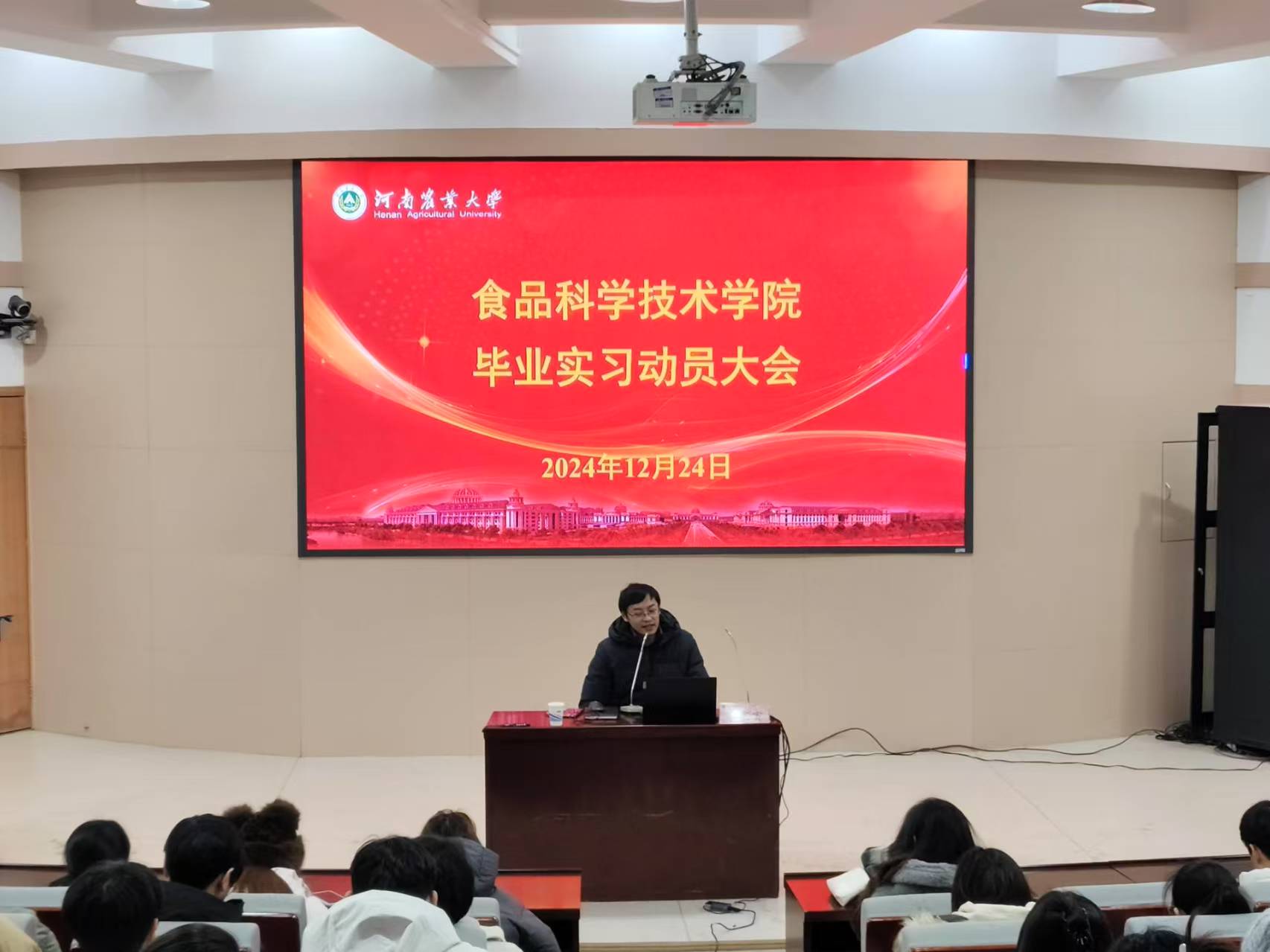 于300人报告厅召开2025届毕业实习动员大会。院教学秘书李家寅、实验室中心主任乔明武出席会议,澳门银河App